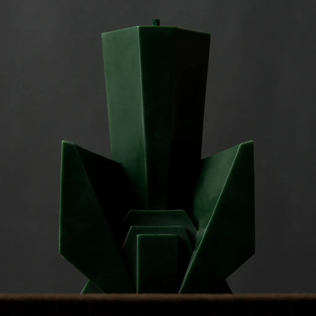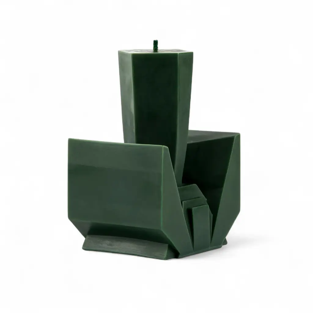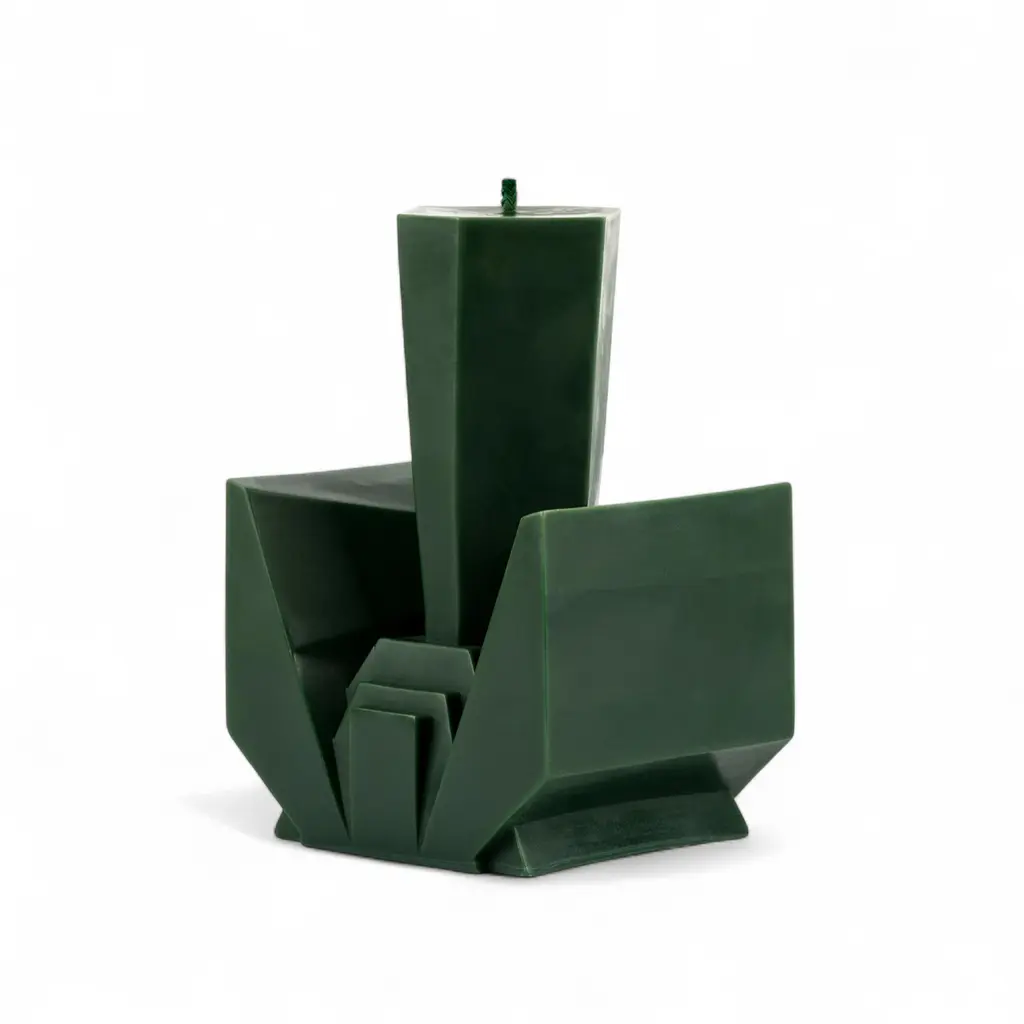 Does it smell like wet grass after rain? Yes—bright, spicy greens with grapefruit-tomato lift, then a warm incense finish. From SOAPMEN’s Deconstructivism series with BOLTBOLT (Gallery), Candle 4 — Wild Growth of Grass turns the “garden” idea into architecture: splayed planes, a stepped base, and a tall green column poured in small batches—no two exactly alike. The scent opens sharp and lush (green mango, grapefruit, tomato), moves through a cool floral heart (jasmine, lotus, citrus), and settles into frankincense with a leathery shadow and a hint of cinnamon. Short burns keep the cut-grass edge crisp; longer sessions pull the resin and spice to the front. Set it on a tray and let it live like a small sculpture between burns. Pair with Candle 1 for a green-on-green duo, or cluster the series to build a jagged skyline on the mantel.