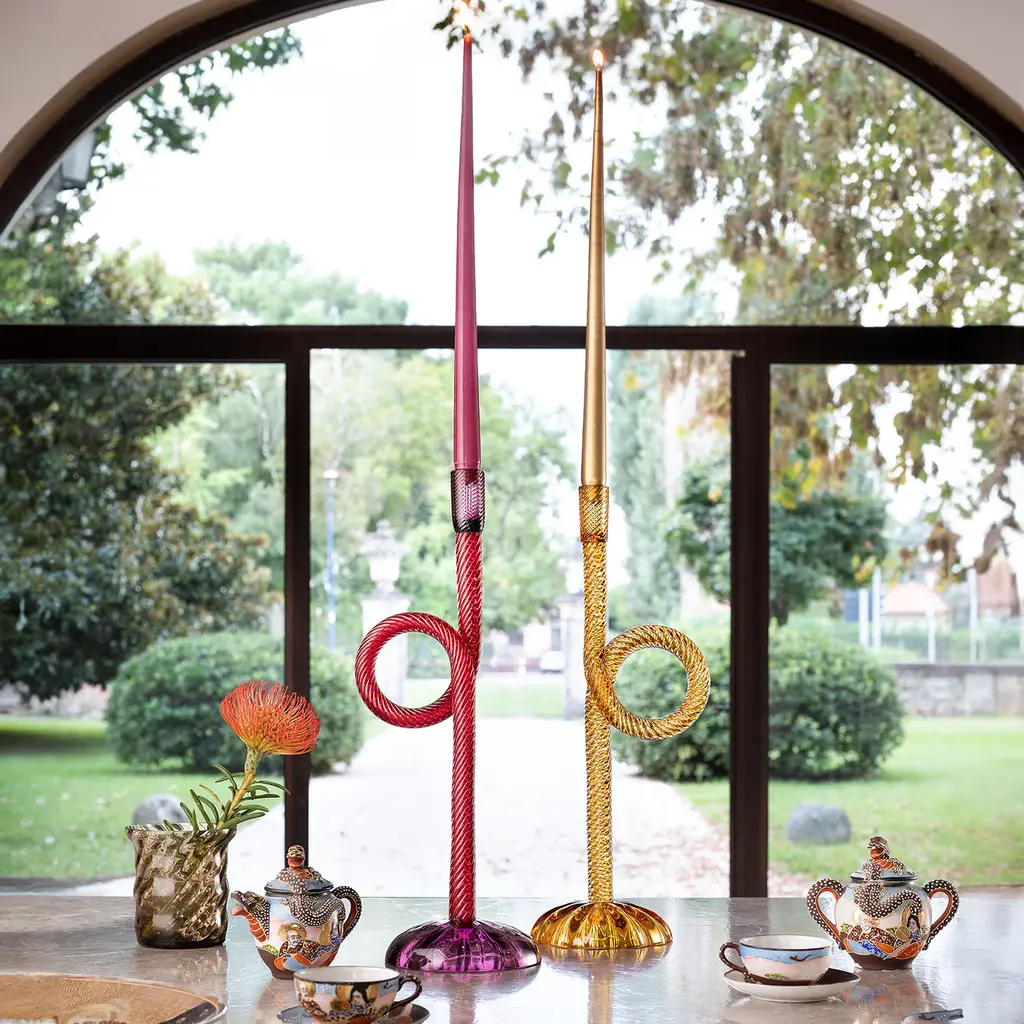 Designer -Irina Flore Mold-blowing design candle created with a grooved decorative motif on the surface in a timeless Venetian twist. This sinuous candle as elegant as a woman's body shape in a modern brown color that suits perfectly your space is dedicated to Vittoria Pisani, one of the most famous actresses, singers, and register of 1600, known as Divina Vittoria. She loved playing mostly the role of the heroine or soubrette. Fragrance Sweet Cosmopolitan.