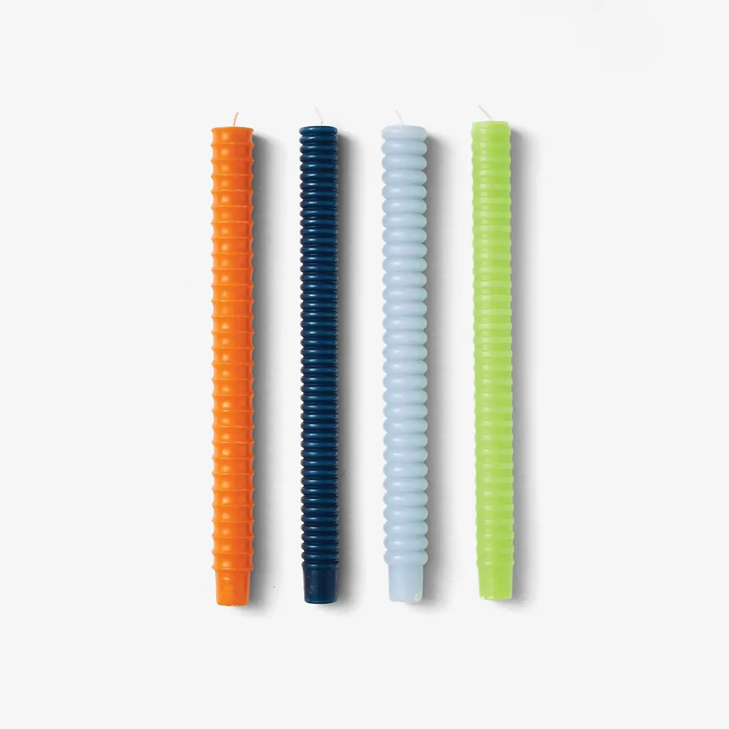 Add a vibrant accent to any room with the Taper Candles from Areaware. Designed by Ellen Van Dusen, founder of Brooklyn-based lifestyle brand Dusen Dusen, the candles double as decorative objects. They feature a ridge pattern reminiscent of industrial designs. Completed in a range of bright, saturated hues, the Taper Candles add a pop of color to any space. The series also features subtly different designs with rounder or more subtle ridges. Made from paraffin wax, the candles burn cleanly and can be easily wiped clean to keep them looking spotless as a decorative accent. Available in sets of 2 or multi-colored sets of 4.