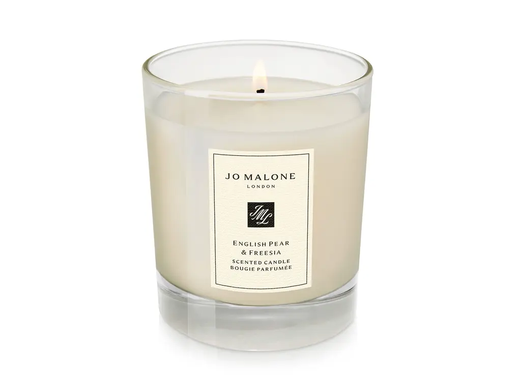 WHAT IT IS:English Pear & Freesia Candle envelops a room and lingers for hours to create an ambiance that is fresh and unexpected. KEY NOTES: - Top note: King William Pear- Middle note: freesia- Base note: patchouli ABOUT THE FRAGRANCE: The World of Jo Malone London introduces English Pear & Freesia, a scent that is inspired by a walk in an orchard and captures the luscious scent of just-ripe pears, cooled by the autumn air, ready to twist free from the tree. Experience the surprising, sensuous freshness of sweet pears, wrapped in a bouquet of white freesias, on a subtle background of scrambling wild roses and skin-warming amber, patchouli and woods. Top note: King William PearAn unusual, innovative ingredient, this accord of mellow scented fruit is fresh and ripe with a juicy facet. Middle note: Freesia Quintessentially English, cool white freesias imbue the heart of the fragrance with a delicate yet distinctive scent. Base note: PatchouliA sensuously deep, woody note that enhances the longevity of the fragrance.