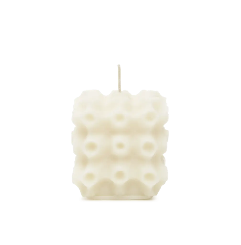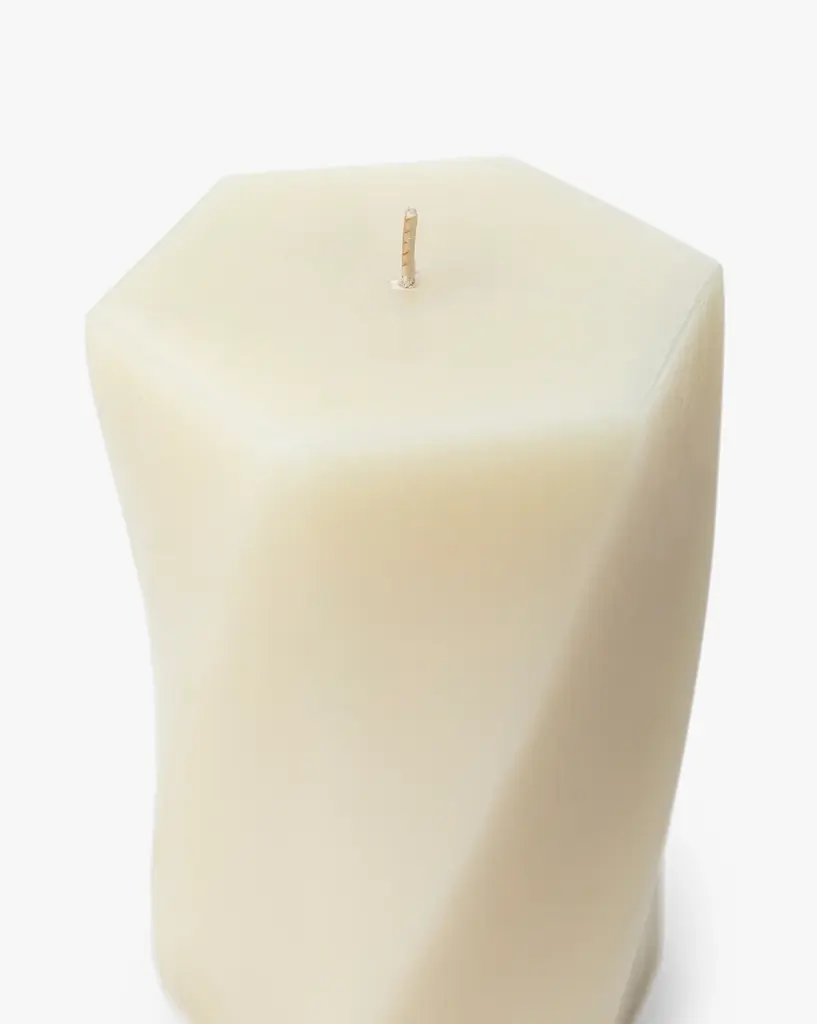 Add sculptural interest and soft ambiance to any space with the Errol Wax Pillar Candle. Featuring a modern, twisted silhouette and a warm neutral hue, it stands beautifully on its own or styled in a grouping perfect for creating a cozy, artful glow.