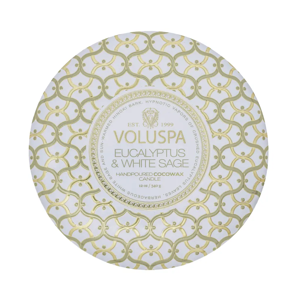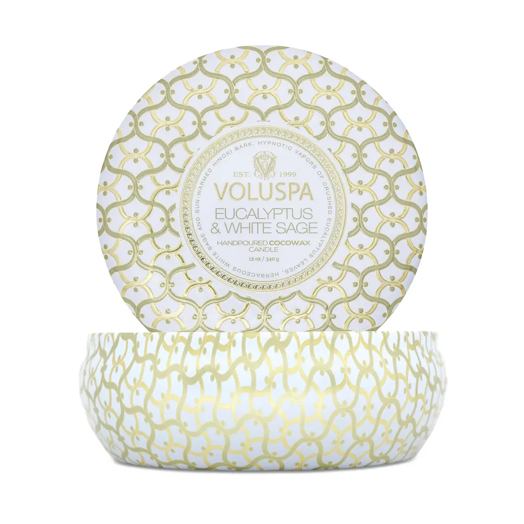 Eucalyptus & White Sage Three Wick Tin Candle 12 Oz.