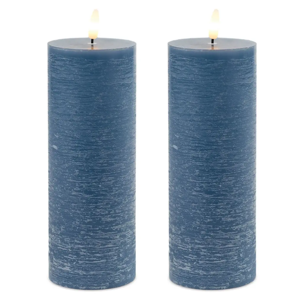 Bring a calm, soothing glow to any space with the FIA Wick Blue Pillar Candle Set. Featuring a cool blue tone and smooth finish, these candles offer a serene and trendy touch to your home decor. The FIA Wick technology gives the illusion of a real flame without any of the hazards associated with traditional burning candles. Crafted from natural soy wax and plastic, these candles offer a clean, flicker-free experience. Sold in a set of two, they are powered by 2 C batteries (not included) and come with a universal remote that works with all FIA Wick candles for ultimate convenience.