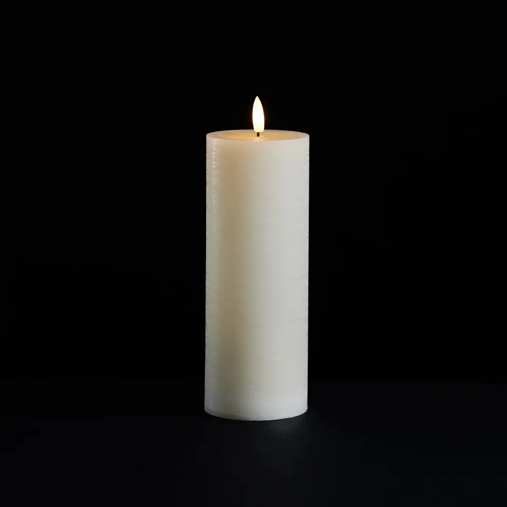 Bring a touch of elegance and safety to your space with the FIA Wick Ivory Pillar Candles. Featuring FIA Wick technology, these candles replicate the warm glow of a real flame, eliminating the hazards of traditional candles. With a cool ivory tone and smooth finish, they effortlessly enhance any decor. Sold in a set of two pieces, these candles add a sophisticated and cozy ambiance to your home. Requires 2 C batteries (not included), and includes a universal remote, allowing you to control all FIA Wick candles from one device.