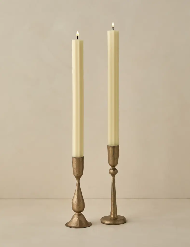 These fluted tapers bring a touch of drama to the candlestick with undulating grooves that dance under the flickering light. This pair is perfect for adding a bit of warmth and color to a timeless tablescape or mantelpiece. Each candle is poured by hand with 100% North American beeswax to offer a clean and seamless burn.