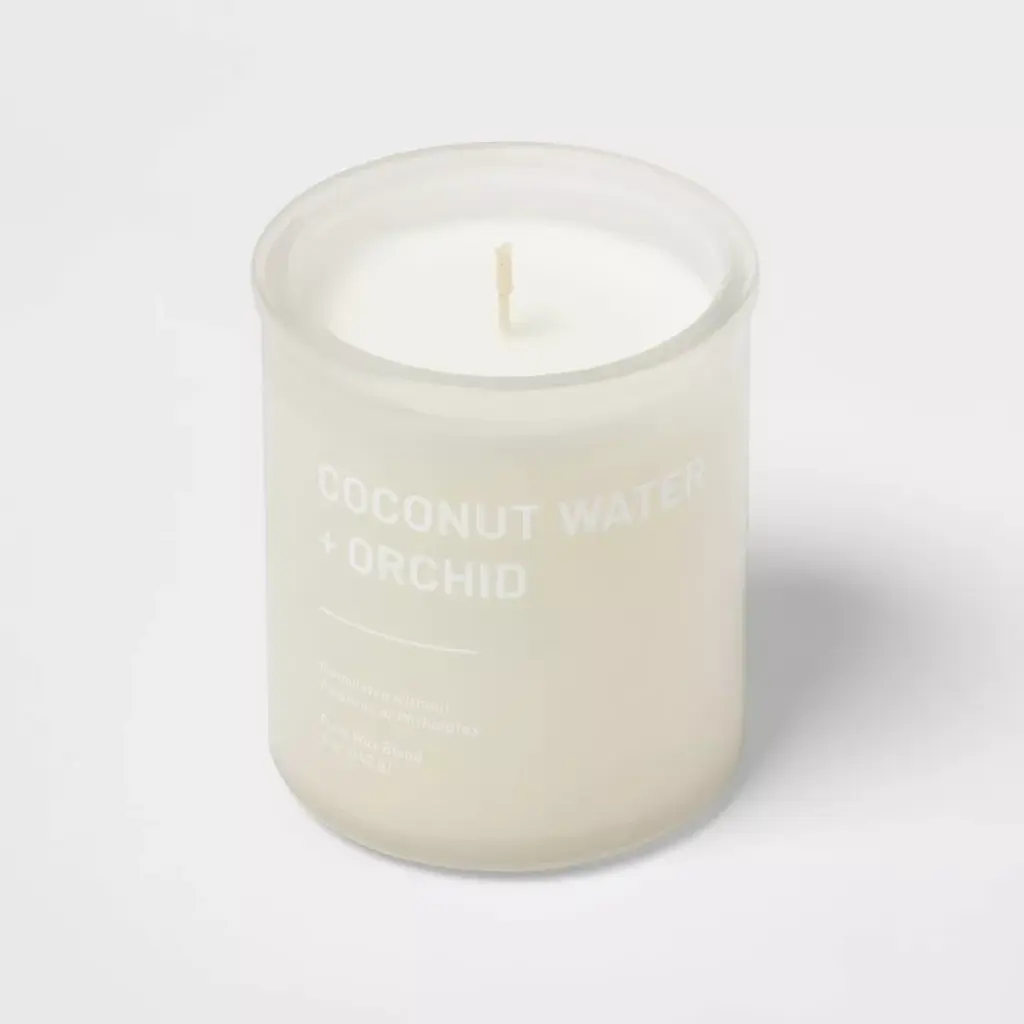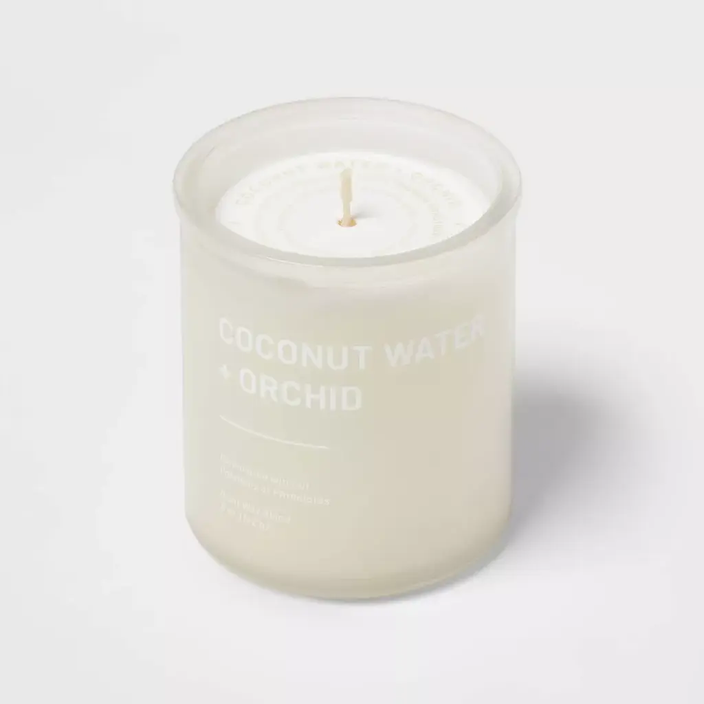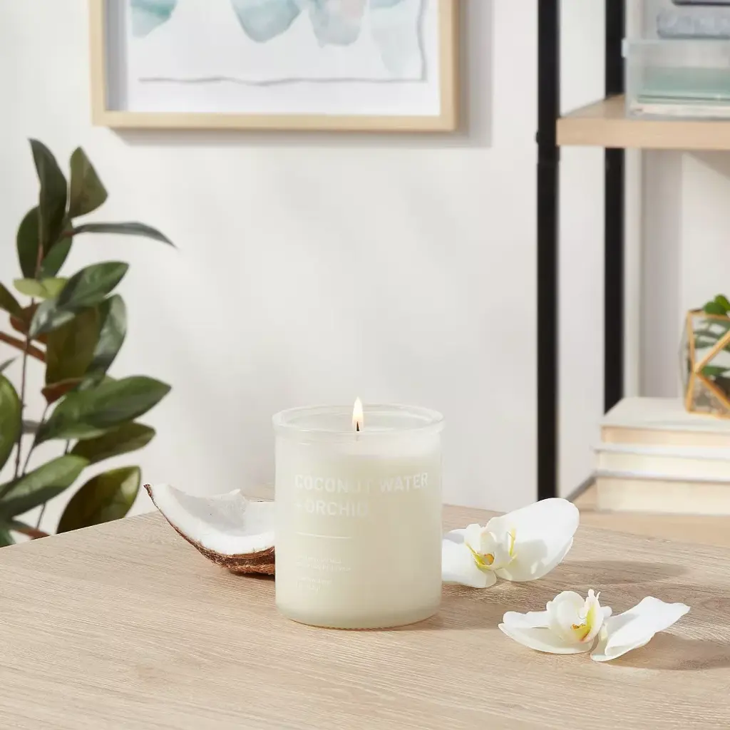 Relax and recharge your senses with the Glass Jar Coconut Water and Orchid Candle Cream by Project 62™. Delighting your home with a sweet, creamy and invigorating scent, this candle combines notes of coconut water, orchid to set the mood. Made with a plant-based wax blend, this candle burns cleaner and longer, allowing you to truly sink into the coconut –orchid bliss. Pamper yourself and let the warm glow of this coconut water and orchid candle fill your space. Modern pieces made for everyday living.