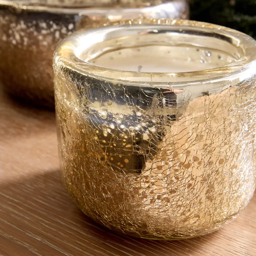 Light this scented candle for a warm glow. The eye-catching beauty of mercury glass. Looks great on mantels, tabletops and desks.