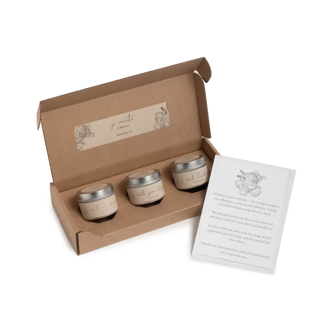 I Deserve Sanctuary, Forever, & Adventure 2 Oz Travel Candle Discovery Set