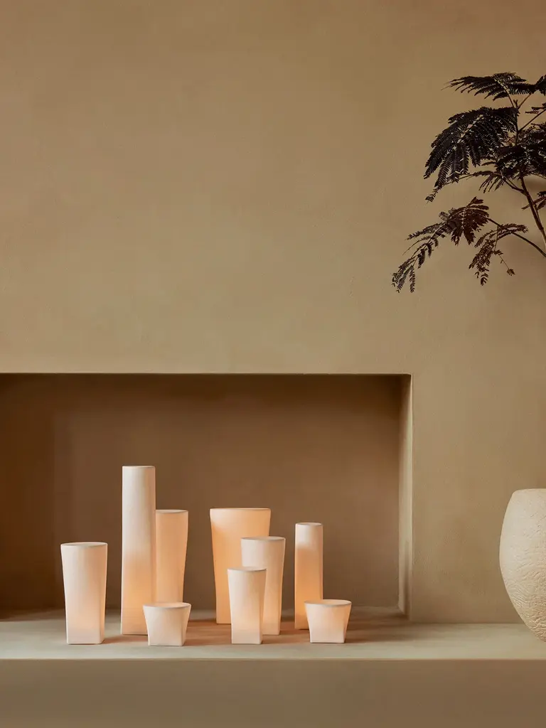 This product is final sale. A beautiful and lasting alternative to traditional candles, the Ignus Flameless Candle uses LED technology and battery power to create soft, atmospheric light. The collection’s six sculptural forms are shaped from bone china with a matte finish. Each candle is dimmable to three different settings.