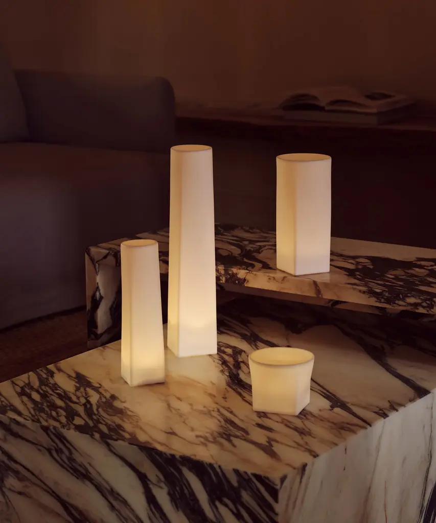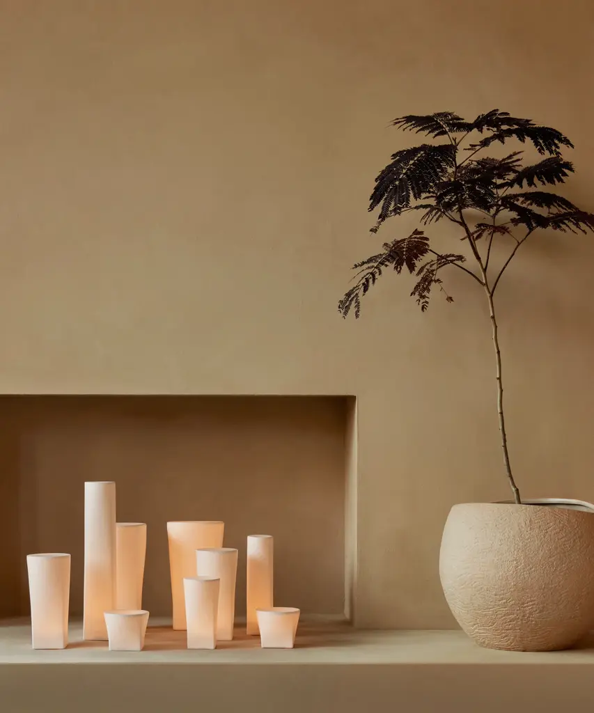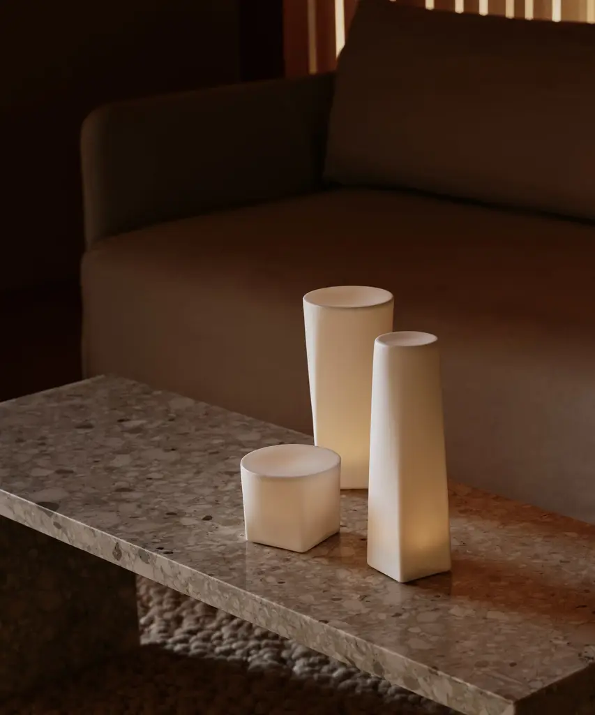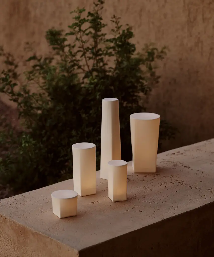 A beautiful and lasting alternative to traditional candles, the Ignus Flameless Candle uses LED technology and battery power to create soft, atmospheric light. The collection’s six sculptural forms are shaped from bone china with a matte finish. Each candle is dimmable to three different settings.Designed by Audo Copenhagen for Audo Copenhagen North America.
