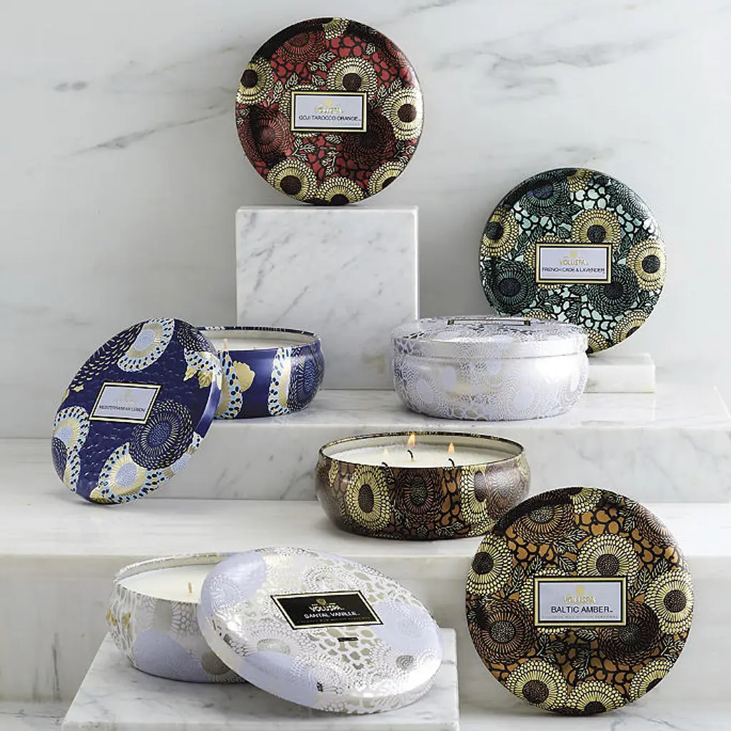 From the perfect shelfie to the show-stopping table centerpiece, we bring beauty to life with our best-selling fall fragrances you know and love. Thoughtfully designed from wax to wick, put our candles anywhere and everywhere in the home or office. Designed as a pop of pattern, our vanity tins have a full wrap label on textured stock, interior pattern with metallic details, and a color rolled edge to complement the colored wax. We use tin for its lovely illuminating qualities and because it is infinitely recyclable. Grounded in pumpkin spice, with a heart of birchwood, and kissed with maple cinnamon. For an optimal burn, trim your wick to ¼’’ length prior to lighting & enjoy for at least 2-3 hours before blowing out.