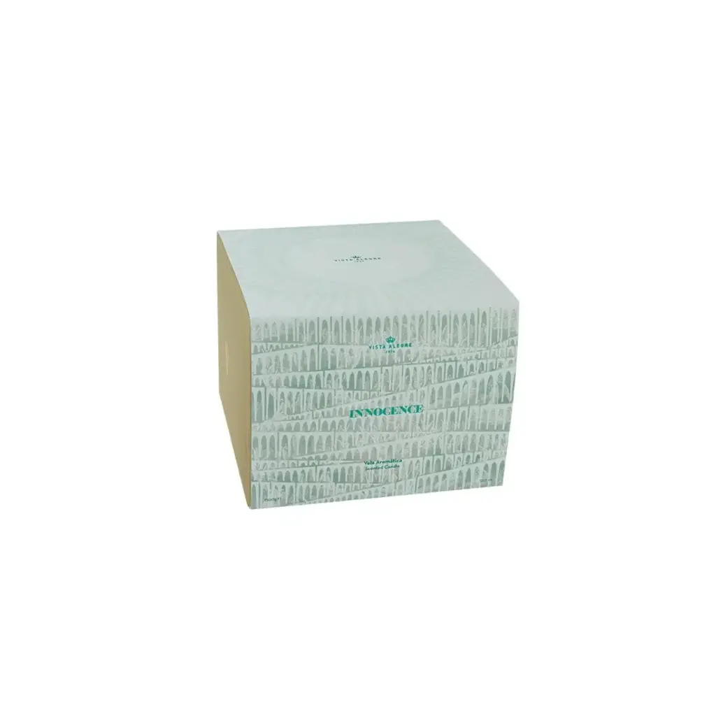 Medium Scented Candle Innocence. Evoking the whiteness of the purest porcelain, symbol of elegance and serenity, Innocence combines, with sophisticated simplicity, fruity notes of fig sap and a bouquet of jasmine petals and white iris, accented by a touch of sandalwood. Vista Alegre is a world-renowned tabletop company and manufacturer of the largest collection of fine tableware, home decor, giftware, and hotelware in porcelain, crystal and glass in Europe. Known for its strong connection to design and culture and its tradition of working with world-renowned artists such as Christian Lacroix, Oscar de la Renta, and Karim Rashid, Vista Alegre offers a quality of excellence that appeals to a broad range of consumer tastes.