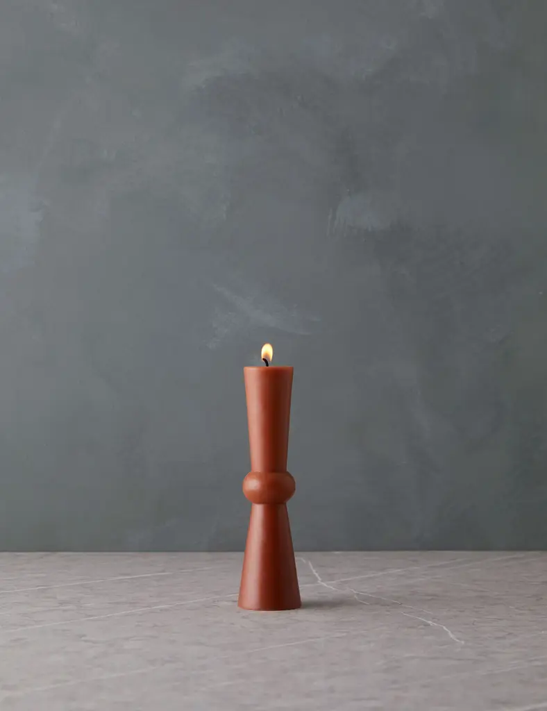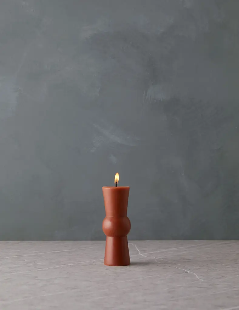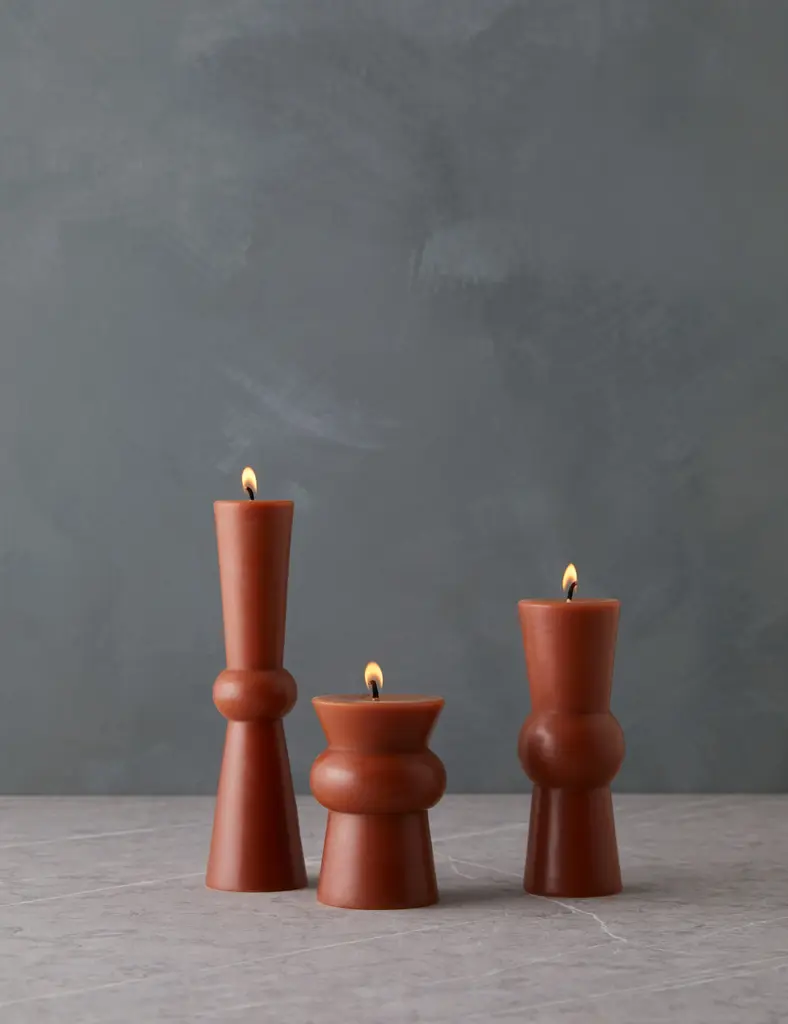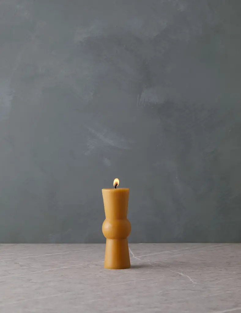 There is a striking sculptural appeal to the Josee Candle that catches the eye with its understated elegance. Available in varied sizes and a rich range of colors, this unique pillar candle elevates any surface or tablescape even before it is lit. Each candle is hand poured with 100% North American beeswax to offer a clean and seamless burn.