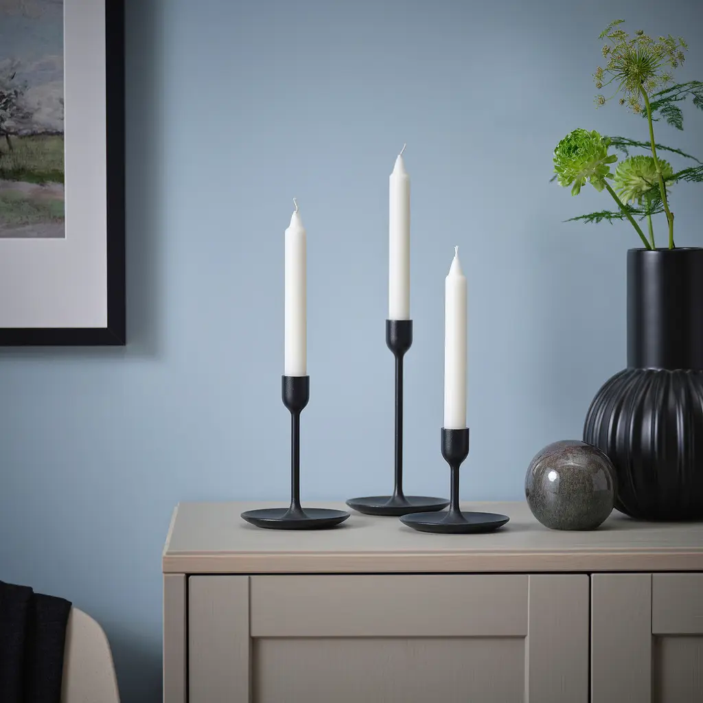 JUBLA Unscented chandelier candle - white 7 ½ " 6 hr. The candle burns with a clear and steady flame because it is made of 100% stearin. Stearin ensures that the candle will not bend, even if it stands in a warm or sunny room. Never leave a burning candle unattended. Do not burn in a drought.