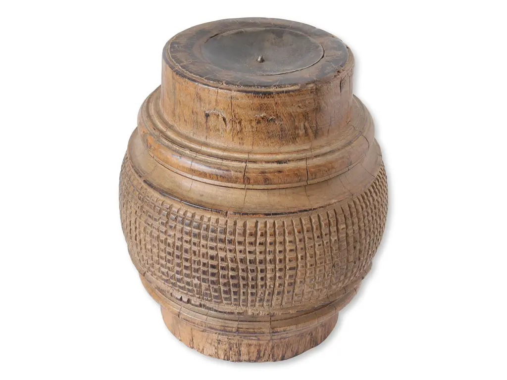 Large salvaged antique corbel transformed into a stunning pillar candle holder. This one-of-a-kind piece showcases the beauty of vintage craftsmanship with intricate hand-carved details. This is a large one, weighing 18 lbs. Polished with natural beeswax. It adds elegance and history to any space, making it a focal point of conversation. The sturdy base ensures stability, and the top platform securely holds pillar candles, this one holds up to three 2 1/2" diameter pillars (not included).