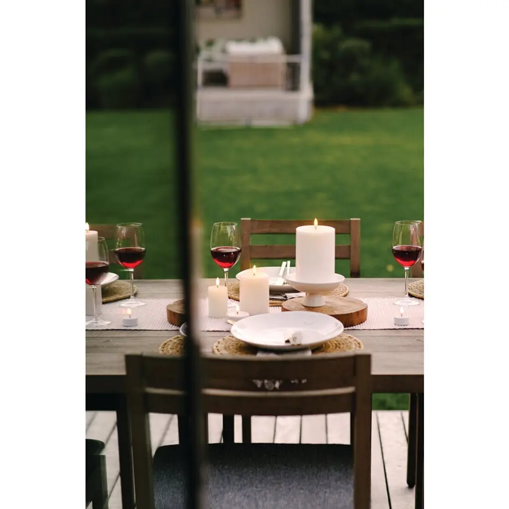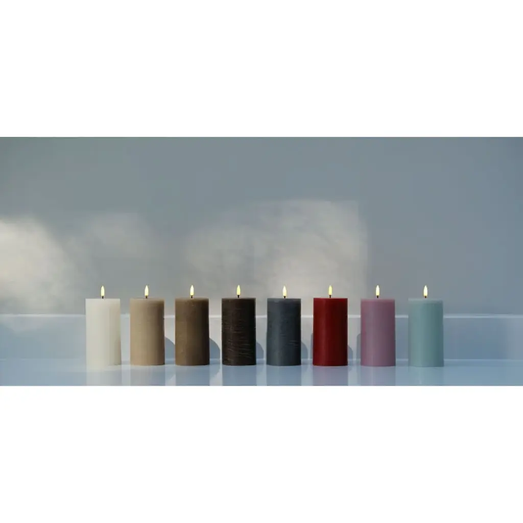 Uyuni Lighting's LED pillar candle is a safe way to create a warm and inviting atmosphere in your home – the kind that can only be achieved with the gentle flicker of burning candles. The large candle looks deceptively authentic: it is coated with real candle wax and equipped with Uyuni’s patented 3D flame that mimics the fluttering of a regular candle, glowing softly in a warm white tone. The battery-operated LED wax candles do not heat up during use and do not need to be monitored like regular candles, making them ideal for families with children or pets. Flameless LED candles are also great for centerpieces and other compositions as they do not pose a fire hazard even when in contact with other decorations. The Uyuni LED pillar candle has a built-in timer with which you can set the candle to burn for six hours. With the Uyuni remote control, available separately, the timer can be set for either 4, 6, 8 or 10 hours. With the remote control, the candle is also dimmable.