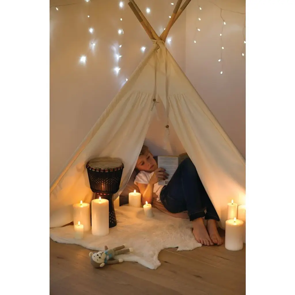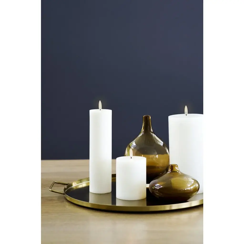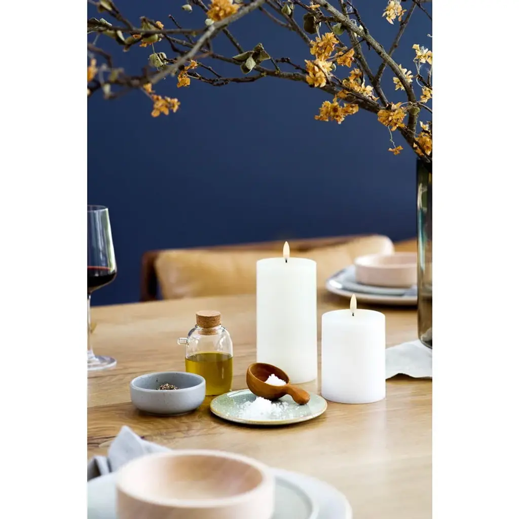 Uyuni Lighting's LED pillar candle is a safe way to create a warm and inviting atmosphere in your home – the kind that can only be achieved with the gentle flicker of a burning candle. The small candle looks deceptively authentic: it is coated with real candle wax and equipped with Uyuni’s patented 3D flame that mimics the fluttering of a regular candle, glowing softly in a warm white tone. The battery-operated LED wax candles do not heat up during use and do not need to be monitored like regular candles, making them ideal for families with children or pets. Flameless LED candles are also great for centerpieces and other compositions as they do not pose a fire hazard even when in contact with other decorations. The Uyuni LED pillar candle has a built-in timer with which you can set the candle to burn for six hours. With the Uyuni remote control, available separately, the timer can be set for either 4, 6, 8 or 10 hours. With the remote control, the candle is also dimmable.