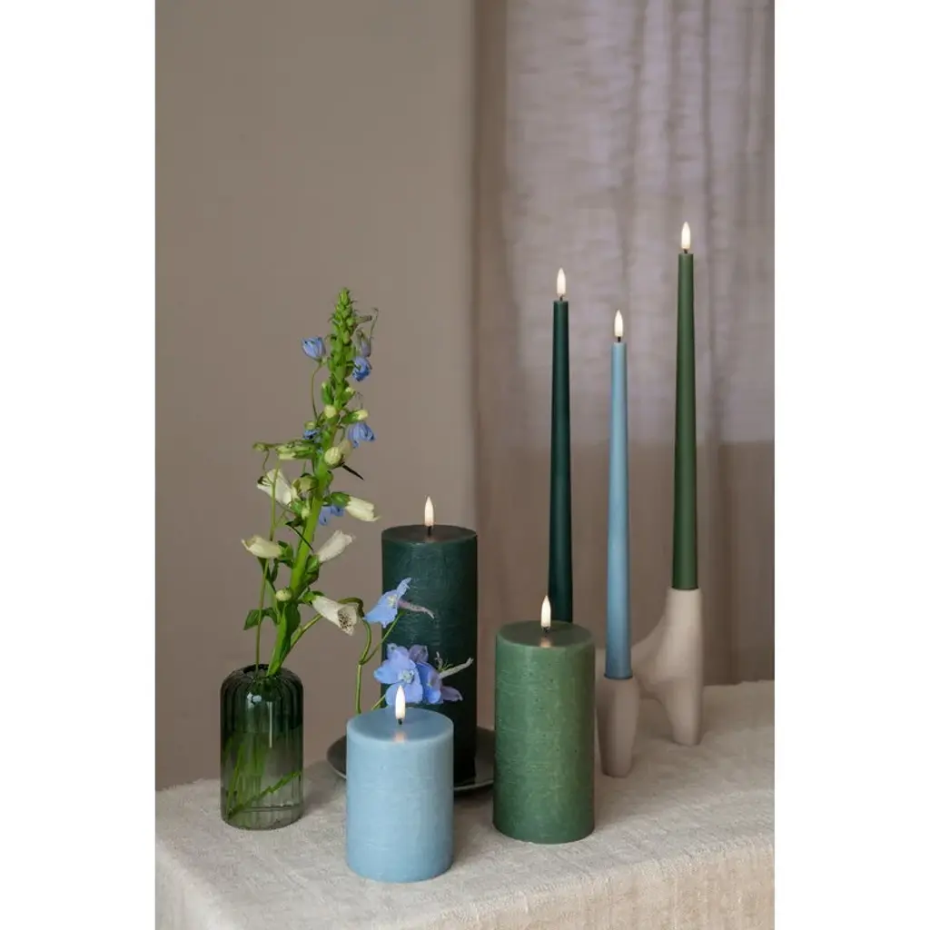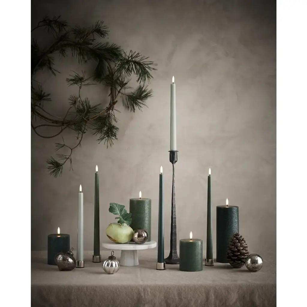 Uyuni Lighting's LED pillar candle is a safe way to create a warm and inviting atmosphere in your home – the kind that can only be achieved with the gentle flicker of a burning candle. The candle looks deceptively authentic: it is coated with real candle wax so the surface has a nice, rustic texture, and equipped with Uyuni's patented 3D flame that mimics the fluttering of a regular candle, glowing softly in a warm white tone. The battery-operated LED wax candles do not heat up during use and do not need to be monitored like regular candles, making them ideal for families with children or pets. Flameless LED candles are also great for centerpieces and other compositions as they do not pose a fire hazard even when in contact with other decorations. The Uyuni LED pillar candle has a built-in timer with which you can set the candle to burn for six hours. With the Uyuni remote control, available separately, the timer can be set for either 4, 6, 8 or 10 hours. With the remote control, the candle is also dimmable.