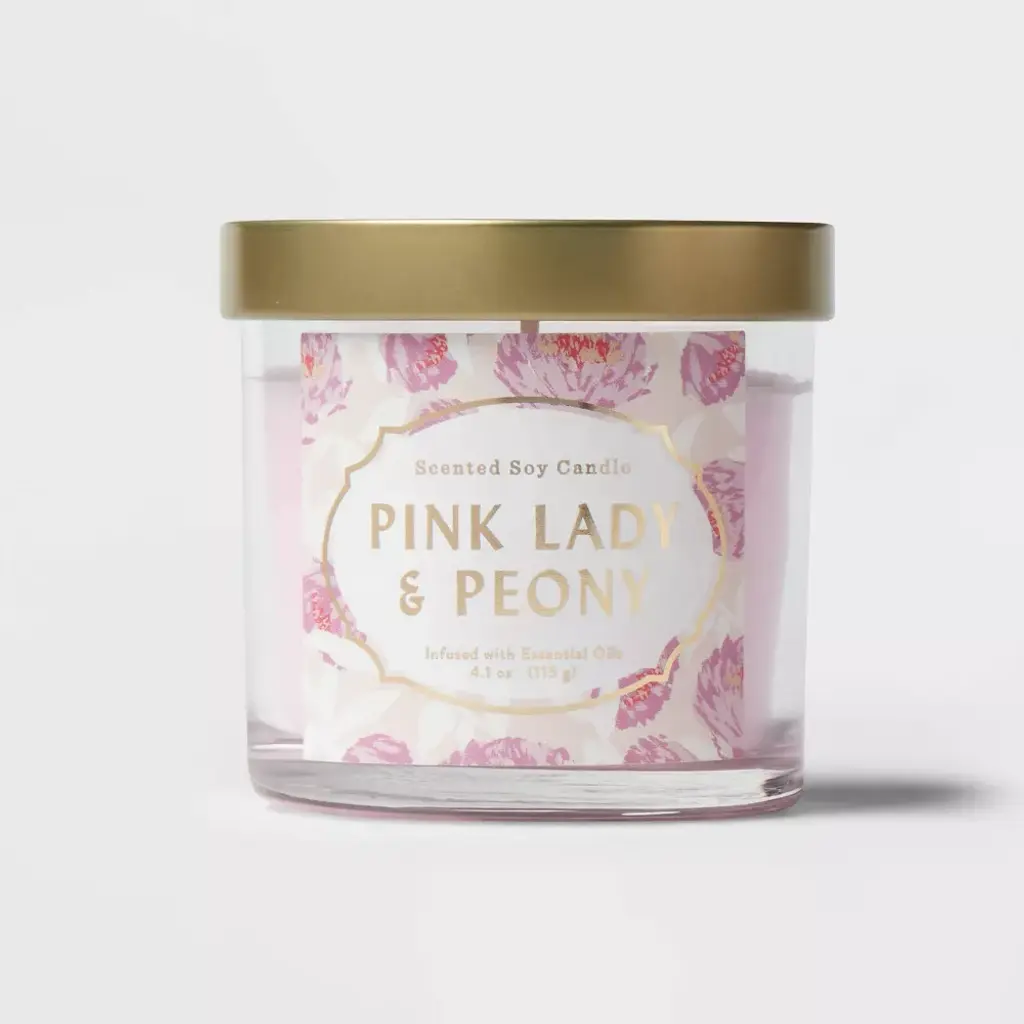 Create a romantic atmosphere and indulge your senses with Lidded Glass Jar Candle Lady Peony Pink by Opalhouse™. Its delicate blend of floral notes and essential oils creates a delightfully soothing scent that is sure to refresh your home. Enjoy up to 20 hours of gentle fragrance, while its gold lid and floral prints add an extra touch of elegance. Let the sweet, captivating aroma of the lady peony candle by Opalhouse™ fill your home and bring a feeling of peacefulness and relaxation. Create spaces as bold as your spirit.