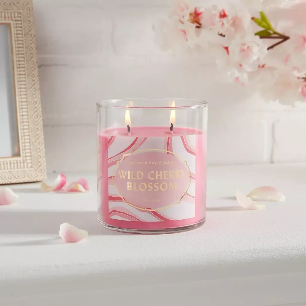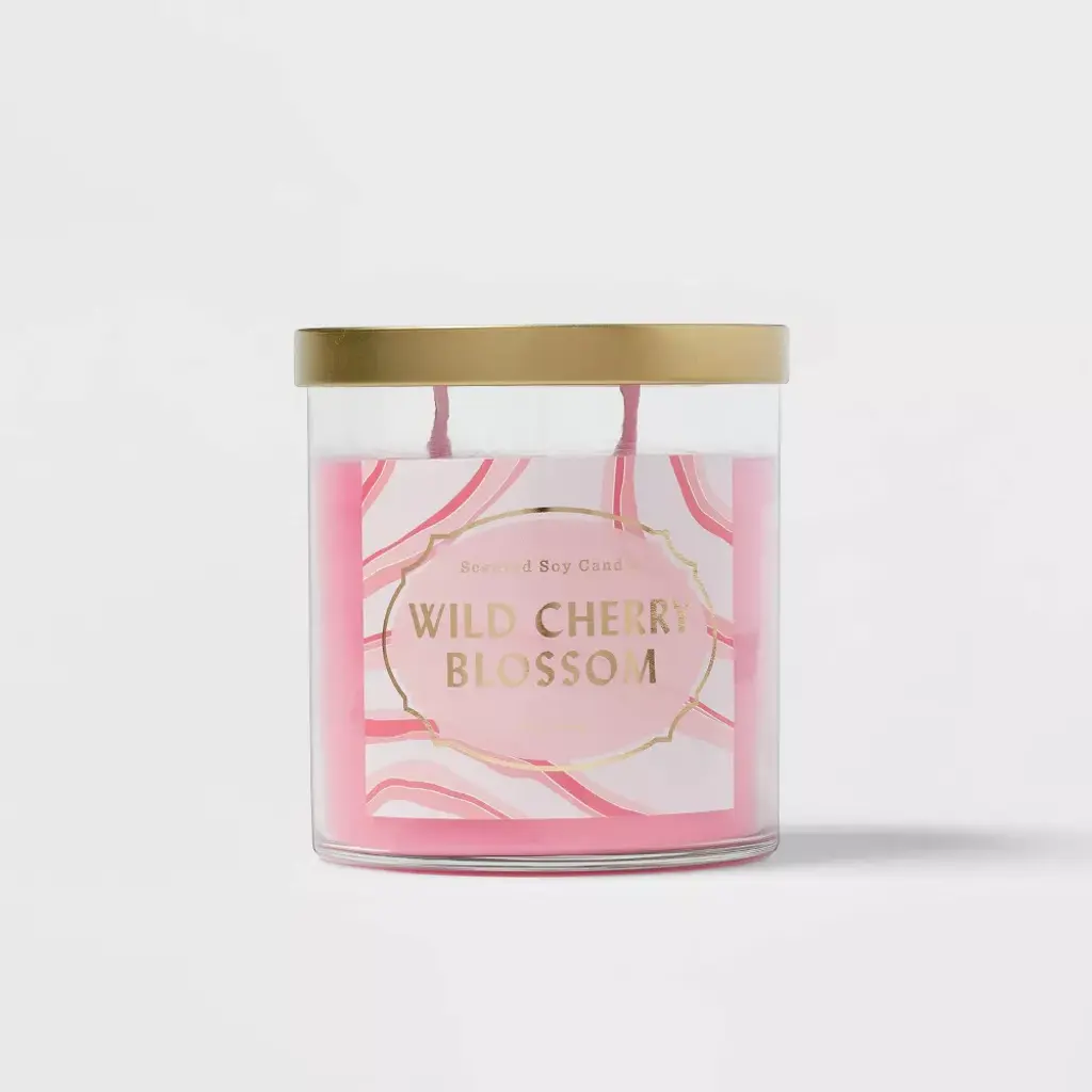 Create your own soothing sanctuary with the Lidded Glass Jar Candle Wildcherry Blossom by Opalhouse™. With a romantic blend of sweet fruity and floral tones, this candle brings the scent of a sunny spring stroll through the woods into your home. The wildcherry blossom candle by Opalhouse™ is set in a glass jar with a luxurious gold lid, adding an extra touch of elegance and beauty to any space. Light this candle and relax in its gentle sensuality that lingers until the very end. Create spaces as bold as your spirit.