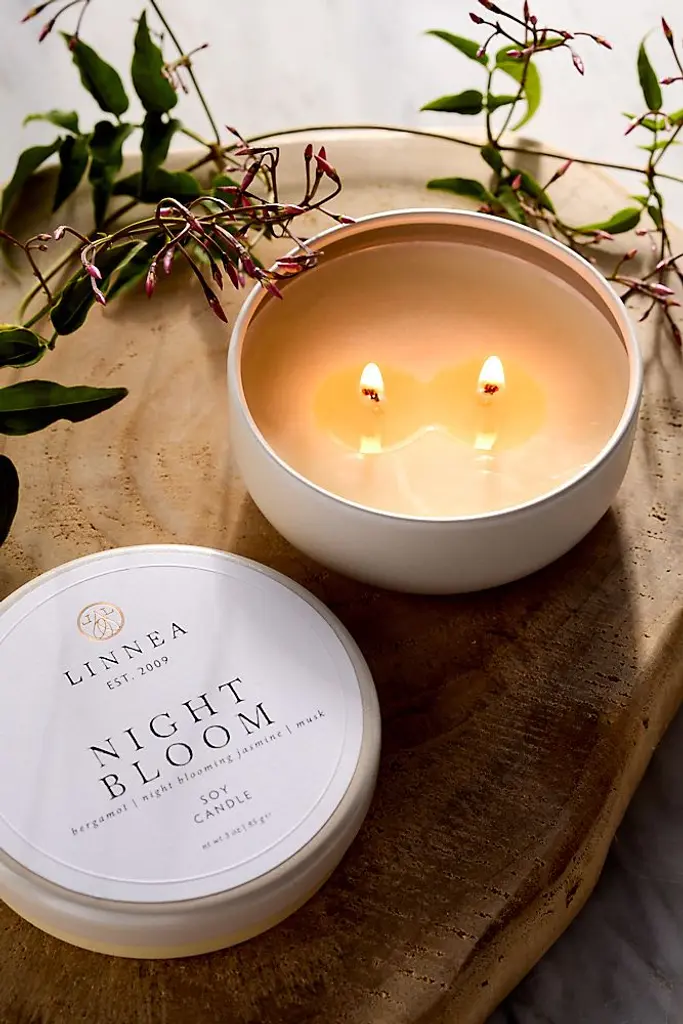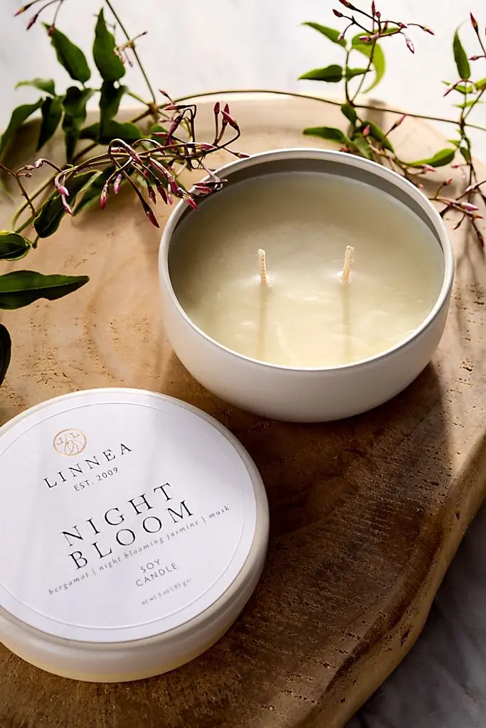 Hand-poured in a pearlized tea tin, this candle from Linnea is crafted using natural biodegradable soy wax and cotton braided wicks. With notes of night blooming jasmine, bergamont, and musk, for a heady, seductive fragrance. About Linnea: A woman-owned, family-driven luxury brand of home fragrances built upon a foundation of quality and craftsmanship. From the introduction of their iconic double-wick, small-batch soy candle in 2009 to the present day, Linnea’s core values remain constant: their products are made with mindfully and ethically sourced materials, every step of their process involves the touch of human hands, each product is designed and packaged locally in their Midwest studio, and they partner with local and global causes to help make the world a better place.