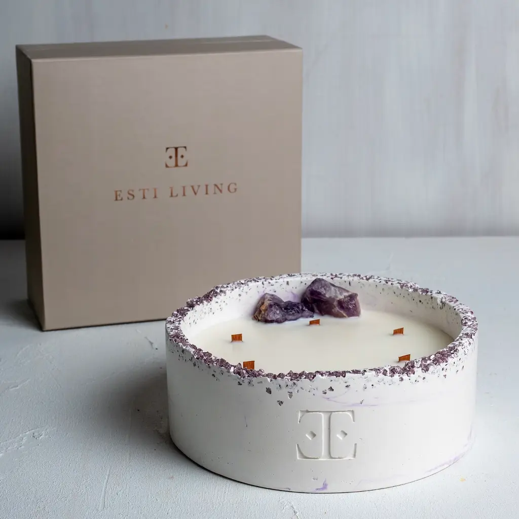 The fragrance opens with a delightful blend of sweet lavender and creamy coconut, creating a soothing and inviting first impression. As the scent develops, refreshing eucalyptus and aromatic lavender take center stage, adding a calming yet invigorating touch. Finally, the base notes of warm cedarwood, soft floral accents, and herbal undertones provide a grounding and sophisticated finish.About Your Amethyst StoneAmethyst has been used for healing purposes in many cultures and is considered a natural stress reliever. Amethyst is believed to offer a number of benefits, including reducing stress and anxiety, balancing sleep patterns, increasing mental clarity and supporting focus. It is also claimed to promote spiritual development, clear negative energy and strengthen the immune system.