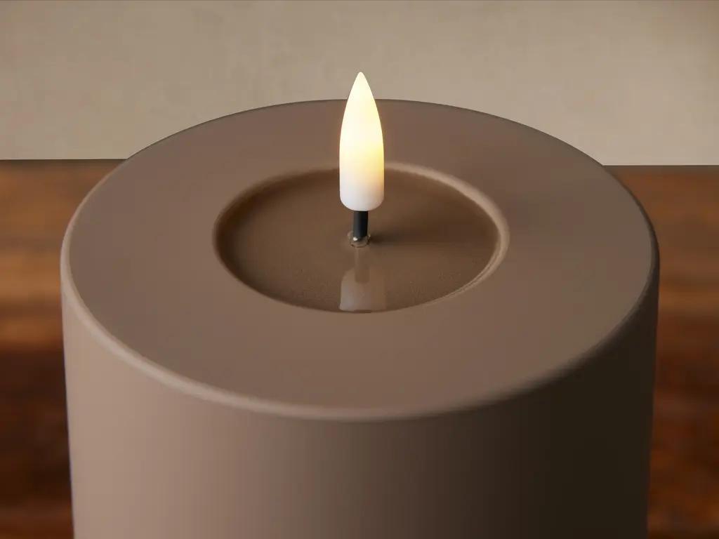 Enhance the ambiance of your outdoor space with an inviting and lasting glow. Each of our Matte Outdoor LED Candles features a unique blend of texture and realism, with a faux pool of melted wax in its center and flickering light—adding a remarkable touch of realistic warmth. Matte finish offers a unique, velvety touch. Flat-top bullet flame features a warm-toned LED light and a 5-hour timer. Requires 2C battery, included. Outdoor safe.