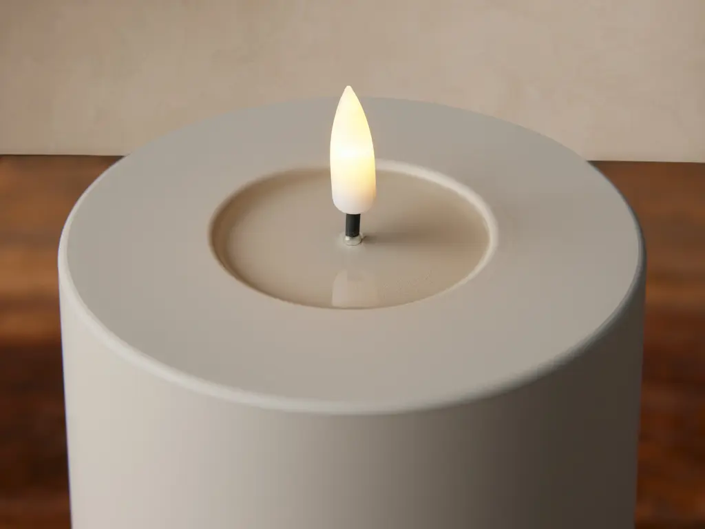 Enhance the ambiance of your outdoor space with an inviting and lasting glow. Each of our Matte Outdoor LED Candles features a unique blend of texture and realism, with a faux pool of melted wax in its center and flickering light—adding a remarkable touch of realistic warmth. Matte finish offers a unique, velvety touch. Flat-top bullet flame features a warm-toned LED light and a 5-hour timer. Requires 2C battery, included. Outdoor safe.