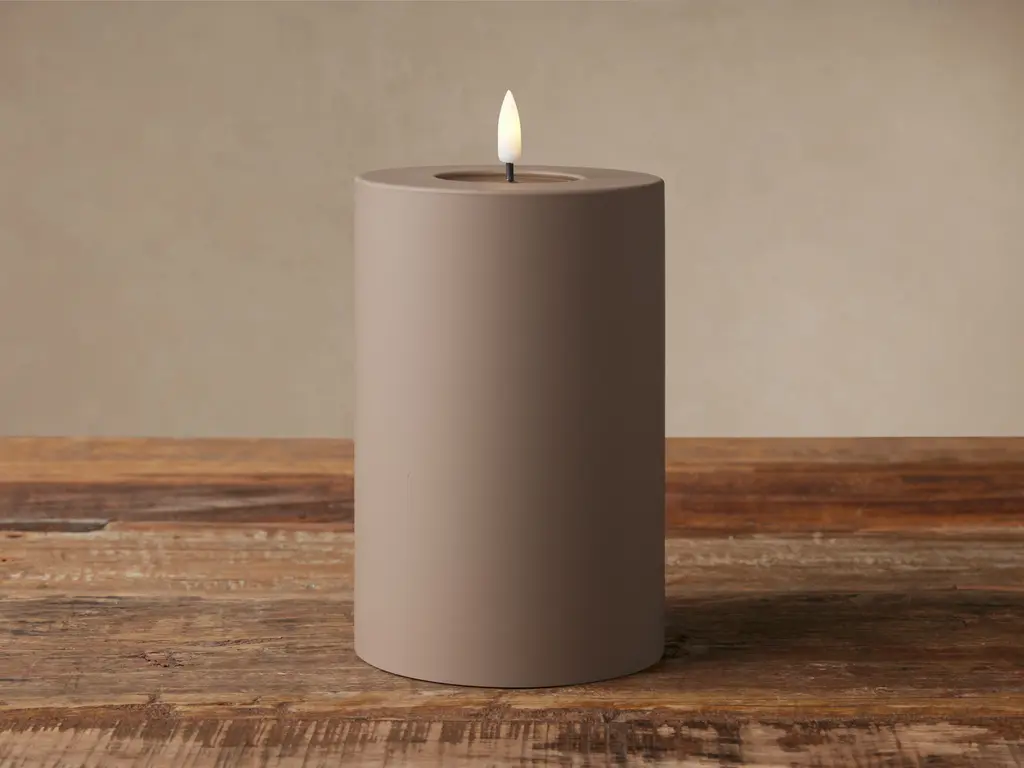 Matte Outdoor Led Candle In Taupe (Set Of 2)
