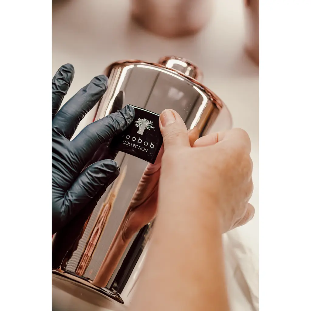 Handmade using European ingredients, Baobab Collection's Les Exclusives Platinum Candles offer an aesthetic and olfactory experience. Premium perfumes from France are combined with food-grade paraffin and hand poured into luxurious, hand-blown glass vessels.