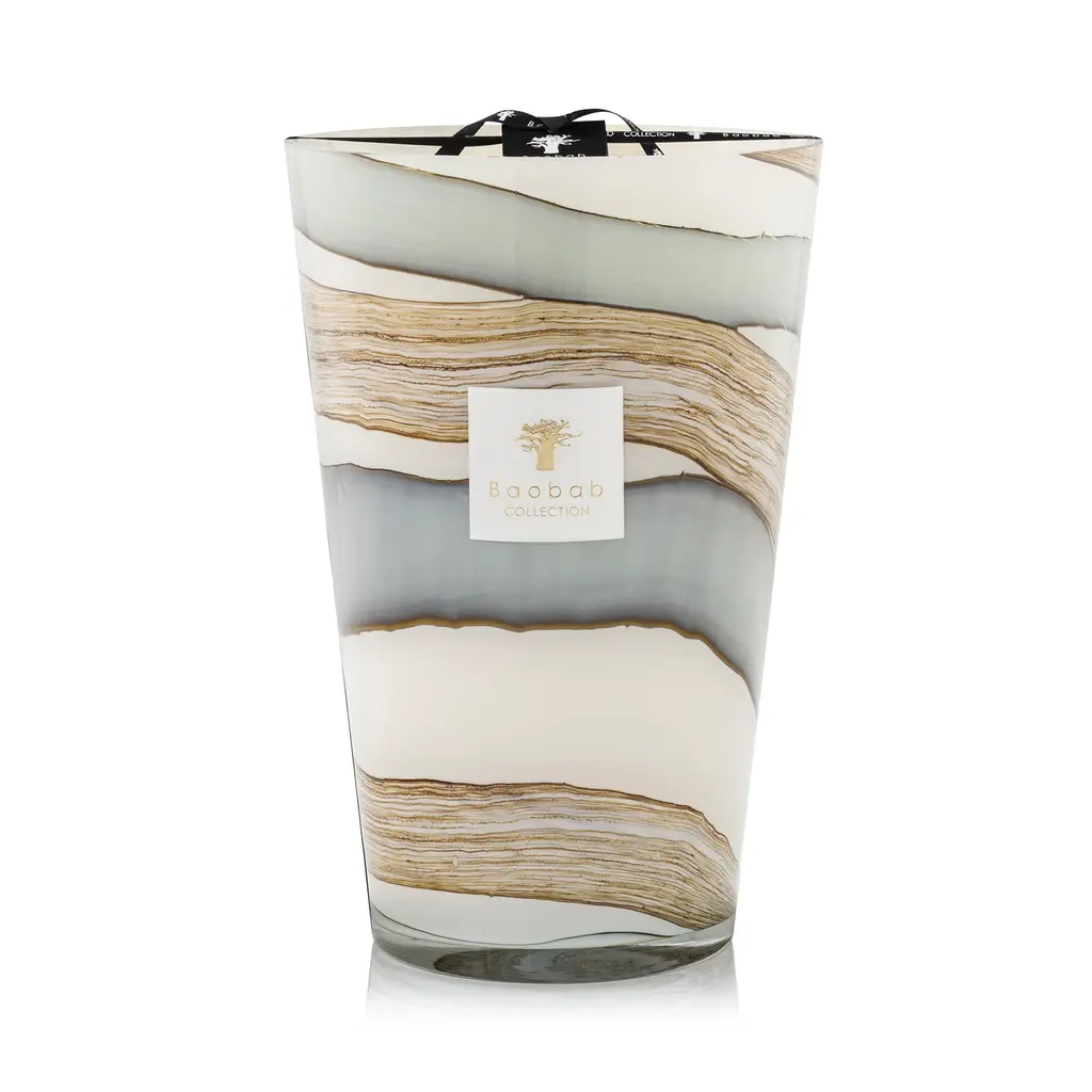 Handmade using European ingredients, Baobab Collection's Stones Lazuli Candles offer an aesthetic and olfactory experience. Premium perfumes from France are combined with food-grade paraffin and hand poured into luxurious, hand-blown glass vessels.
