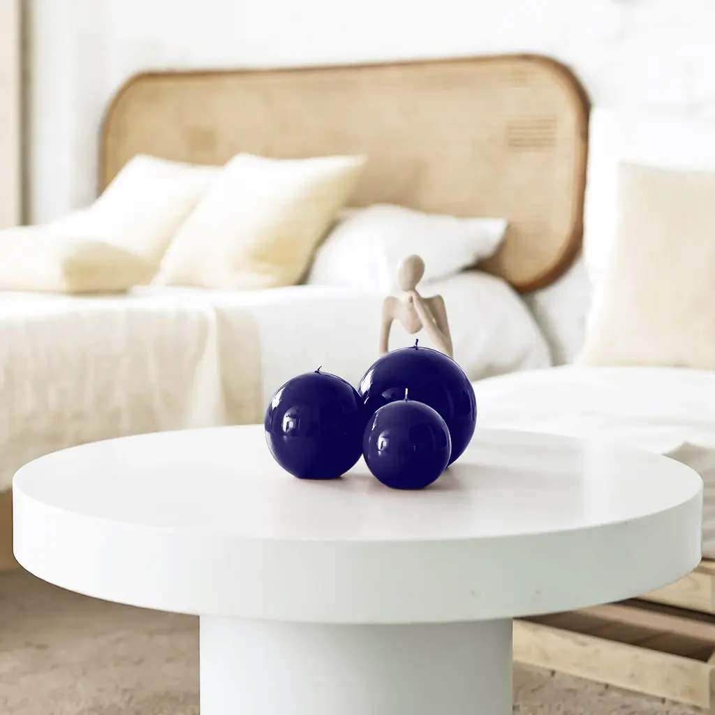 Add a decorative accent to any room with this blue round candle from the Meloria by Graziani collection. Modern and stylish, the candle features a spherical shape and a glossy finish. Each candle is carefully made in Italy using a blend of traditional and new techniques. After dyeing the wax, artisans dip the candles by hand into a natural, cellulose-based varnish that gives them a lustrous finish. The whole process lasts a week, significantly longer compared to industrially produced candles that are packaged in minutes. This Meloria blue round candle comes in three sizes, of 4″, 4.8″, and 6″, with a burning time of 44, 66, and 100 hours, respectively. Packaged in a gift box with a black velvet bag, this Meloria candle is perfect as a gift.