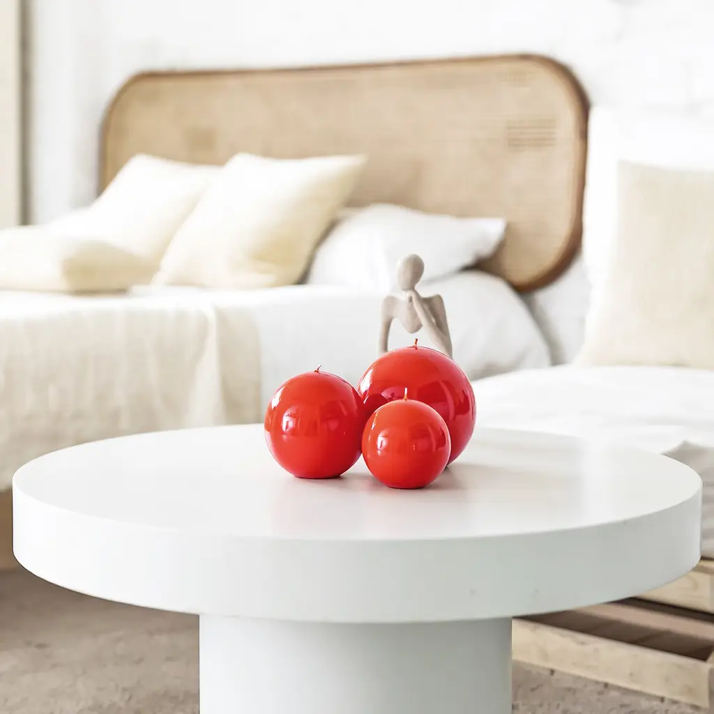 Add a vibrant decorative accent to any room with this coral round candle from the Meloria by Graziani collection. Modern and stylish, the candle features a spherical shape and a glossy finish. Each candle is carefully made in Italy using a blend of traditional and new techniques. After dyeing the wax, artisans dip the candles by hand into a natural, cellulose-based varnish that gives them a lustrous finish. The whole process lasts a week, significantly longer compared to industrially produced candles that are packaged in minutes. This Meloria coral round candle comes in three sizes, of 4″, 4.8″, and 6″, with a burning time of 44, 66, and 100 hours, respectively. Packaged in a gift box with a black velvet bag, this Meloria candle is perfect as a gift.
