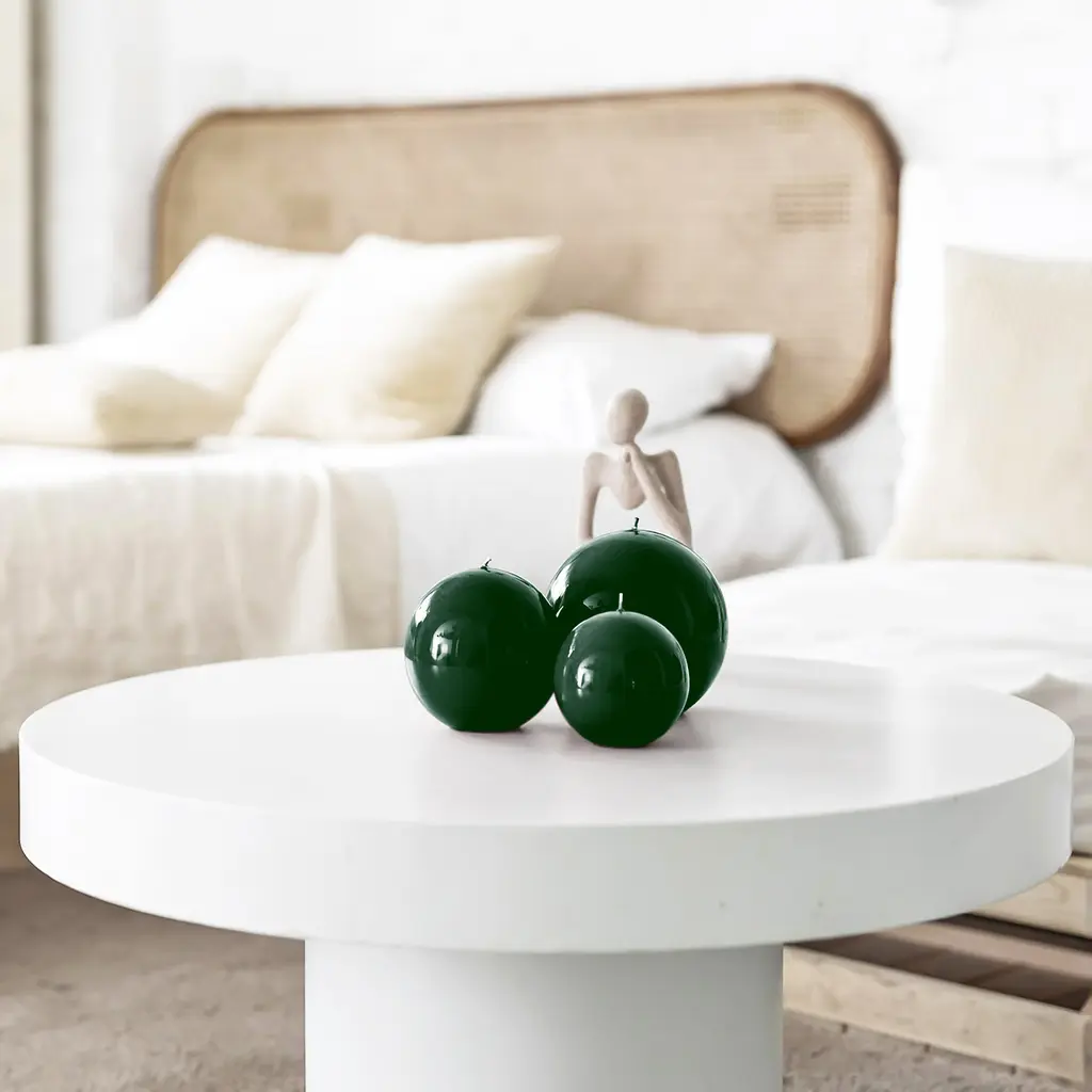 Add a decorative accent to any room with this english green round candle from the Meloria by Graziani collection. Modern and stylish, the candle features a spherical shape and a glossy finish. Each candle is carefully made in Italy using a blend of traditional and new techniques. After dyeing the wax, artisans dip the candles by hand into a natural, cellulose-based varnish that gives them a lustrous finish. The whole process lasts a week, significantly longer compared to industrially produced candles that are packaged in minutes. This Meloria english green round candle comes in three sizes, of 4″, 4.8″, and 6″, with a burning time of 44, 66, and 100 hours, respectively. Packaged in a gift box with a black velvet bag, this Meloria candle is perfect as a gift. .
