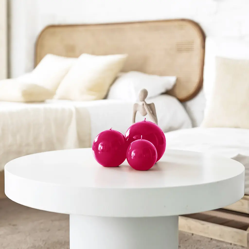 Add a pop of color and Italian style to a room with this fuchsia round candle. Made in Italy by Graziani, a family-owned company that has produced high-quality candles since 1805, Meloria Fuchsia resembles a glass globe thanks to the glossy finish. To create this eye-catching effect, artisans submerge each dyed candle by hand into a vat of cellulose-based varnish which coats the wax with a lustrous layer. Letting the candles dry naturally ensures the perfect finish. Like other products from the Meloria collection, this fuchsia round candle comes with a black velvet bag and an elegant gift box. The 4″, 4.8″, and 6″ diameter sizes have a burning time of 44 hours, 66 hours, and 100 hours, respectively. .