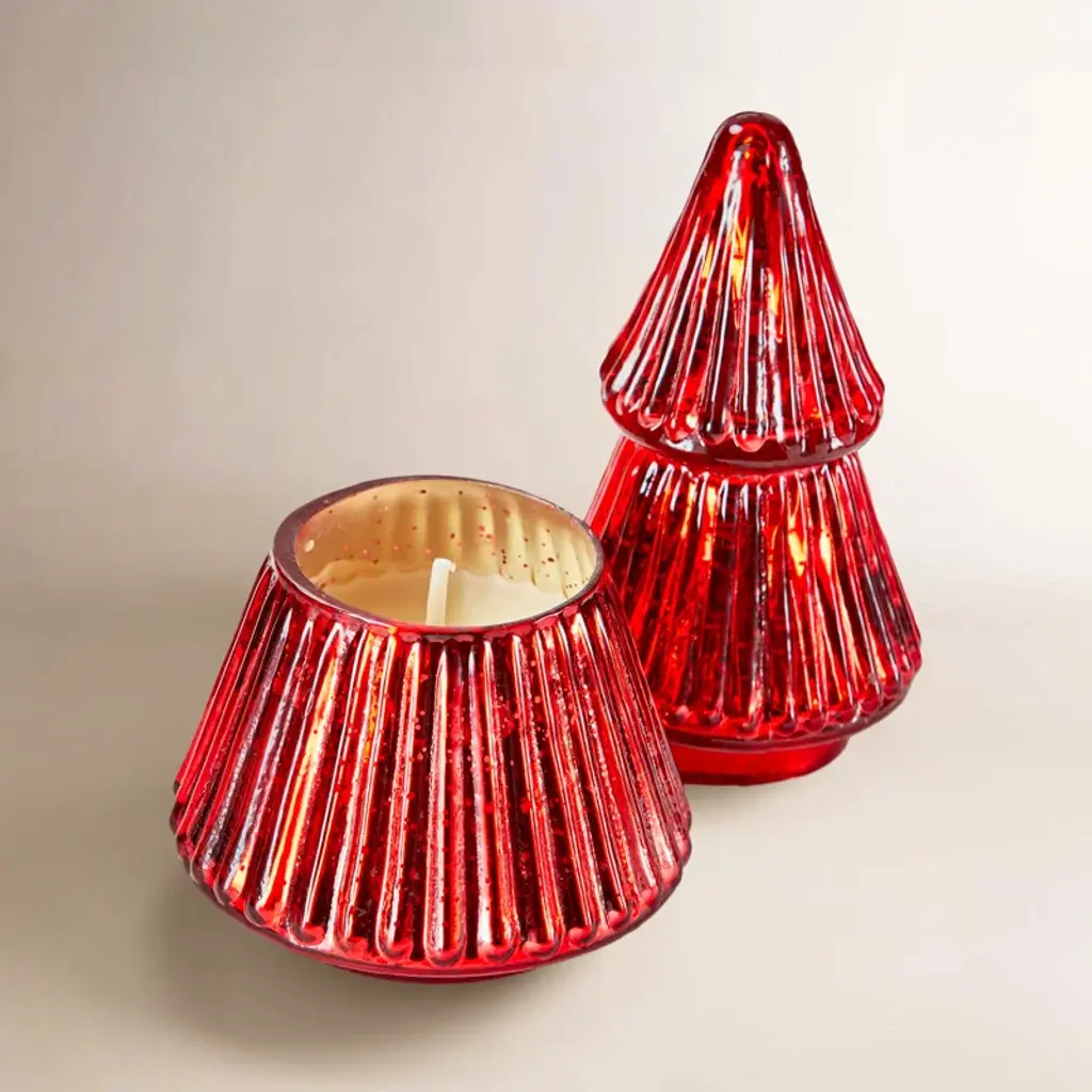 Mercury Glass Fluted Candles - Balsam & Cedar
