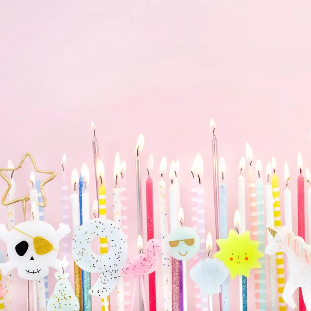Unwrapping presents, cake, blowing out candles. Some things never lose their appeal, no matter how many birthdays pass you by, so why not add a little extra touch of luxury to your party with this set of twenty-four elegant ivory candles, decorated with gold glitter flecks. Gold glitter detail. Plastic holders. Pack of 24.