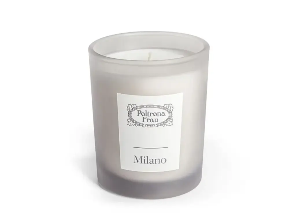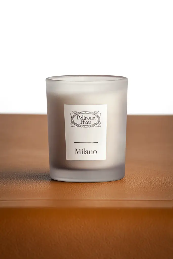 A tribute to the capital of design, fashion, and timeless, understated and sophisticated elegance: a city that has much in common with Poltrona Frau. The Milano fragrance, created by Acqua di Parma exclusively for the Tolentino brand, is now also available as a scented candle.Modern and sophisticated notes evoke the essence of a city famous all over the world for its style. Tonka Bean, Cinnamon and Indonesian Patchouli Wood are combined with Haitian Vetiver in a rich bouquet of noble essences, whose airy and elegant notes are inspired by the international allure of the city. The base notes of the fragrance transport us into Milan’s blossoming parks and gardens during the spring: subtle hints of Musk, Rose and Violet add a delicate and gentle touch, completing the olfactory portrait of a fascinating and multifaceted city of many contrasts. The Milano scented candle comes in a refined grey satin glass holder notable for the white label bearing the Poltrona Frau logo and the name of the fragrance.Notes: Woody Oriental. Black Leather, Tonka Bean, Violet, Patchouli Essential Oil, Vetiver Essential Oil, Cinnamon, White Musk.