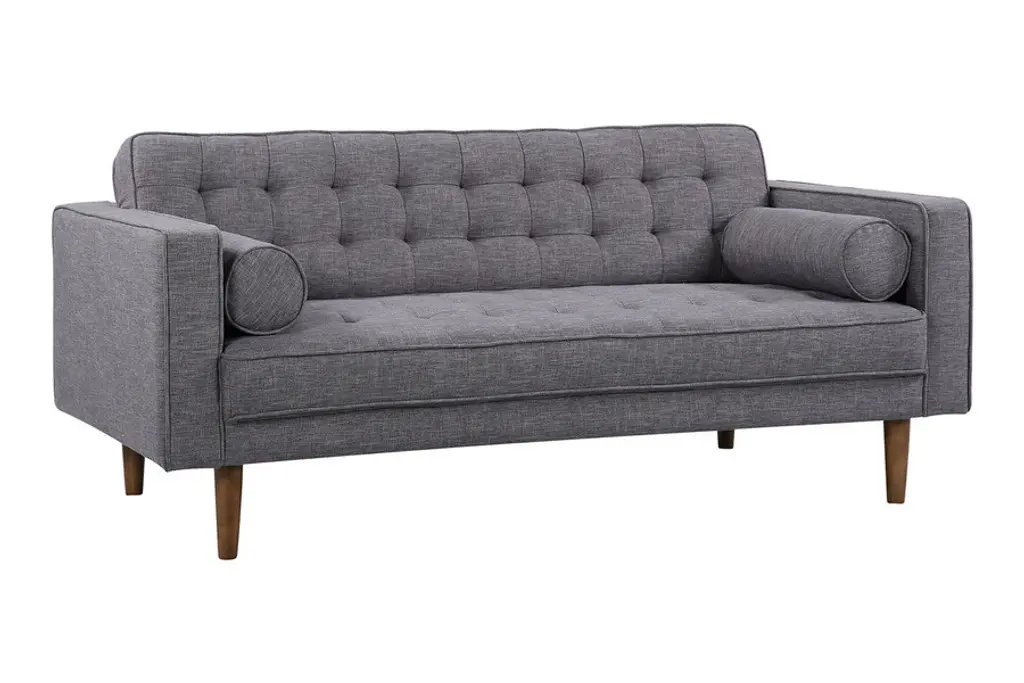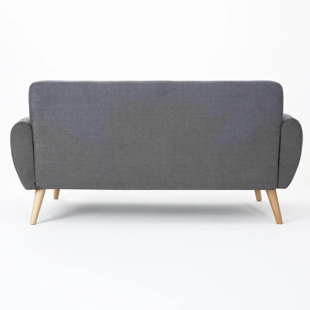 Treat your interior space to a charming loveseat featuring a button-tufted backrest with waffle stitching and slender tapered wood legs. Ideal for small living spaces, this mid-century modern design brings an impressive modern twist with smooth upholstery and a durable rubberwood frame.Enhance your home decor with this exquisite loveseat, perfect for any living room, bedroom, or foyer. The button-tufted waffle stitching and smooth upholstery provide a sophisticated look, while the compact design is perfect for apartments or small spaces.Features