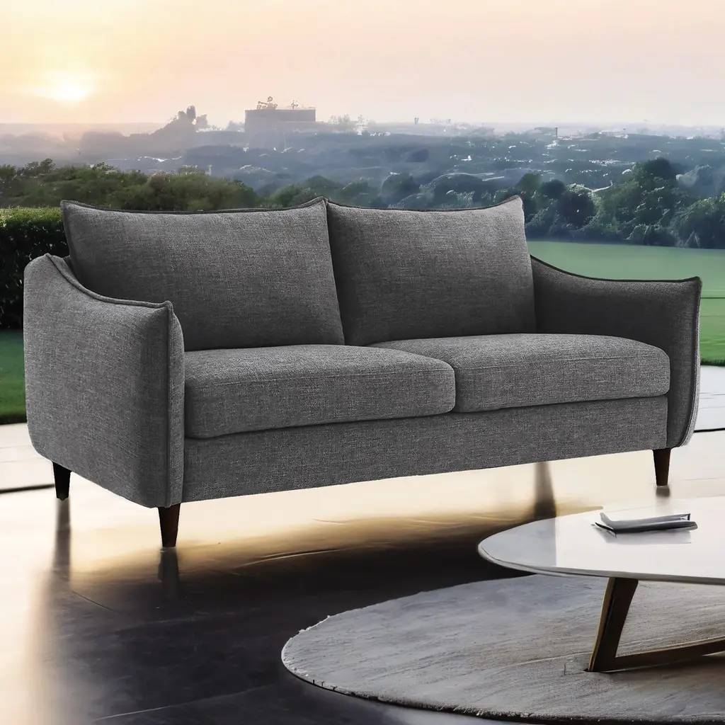 Modern 67.25" Upholstered Loveseats For Smaller Spaces, 2-Seater Button-Tufted Sofa With Waffle Stitching And Tapered Wood Legs - Dark Grey