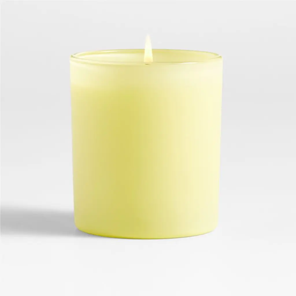 Utterly modern in monochromatic yellow. Our Citron candle infuses the air with the fresh scents of bergamot and mandarin and the sweetness of jasmine and tuberose grounded by sandalwood and musk. Packaged in a lemon-yellow gift box, the matching matte glass vessel filled with wax in the same hue has a sculptural look that brightens your coffee table, dresser or mantel. Part of our exclusive Monochrome scent collection, the No. 9 Citron Yellow candle is a Crate & Barrel exclusive.