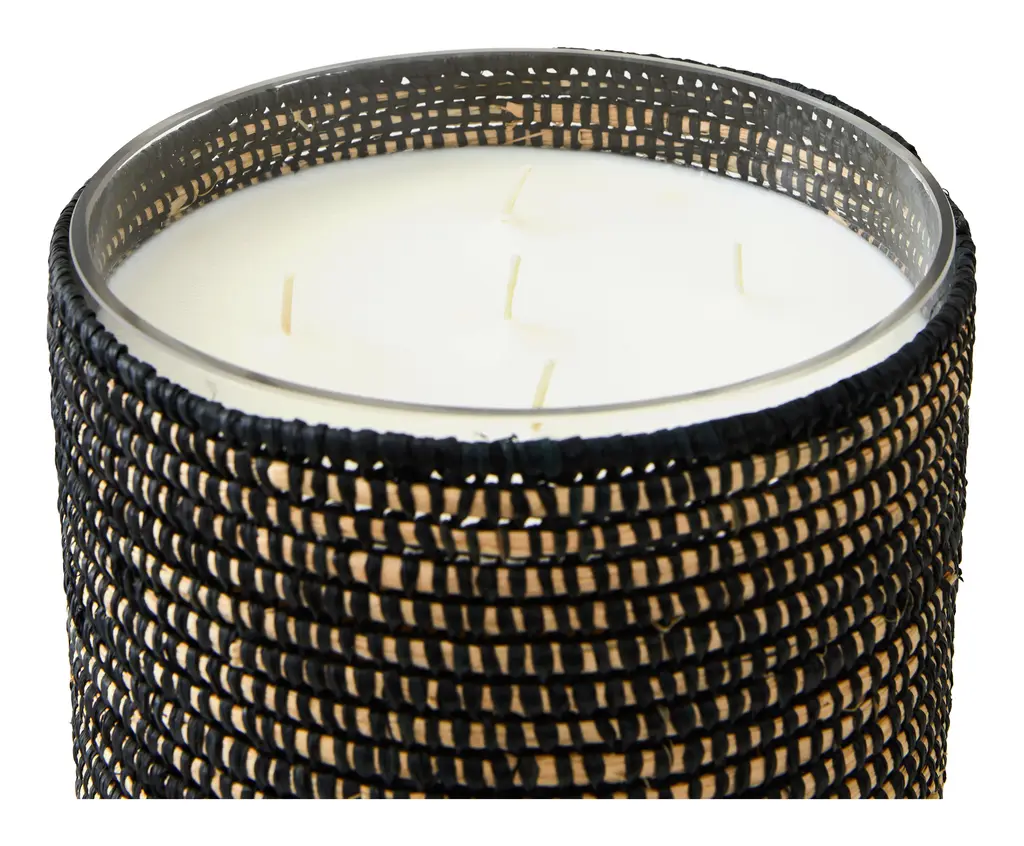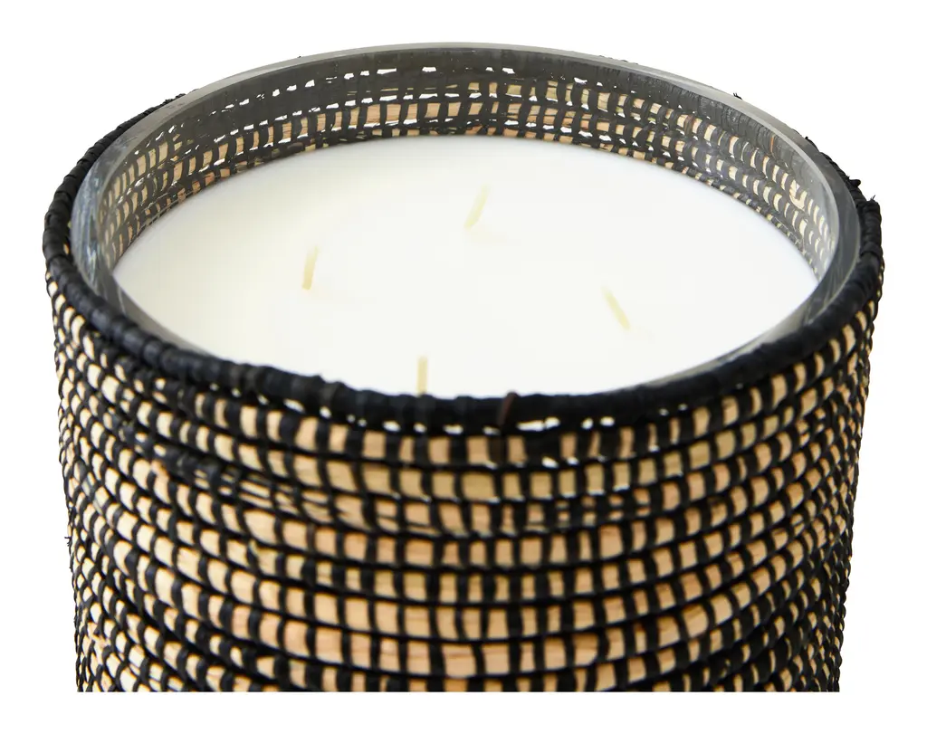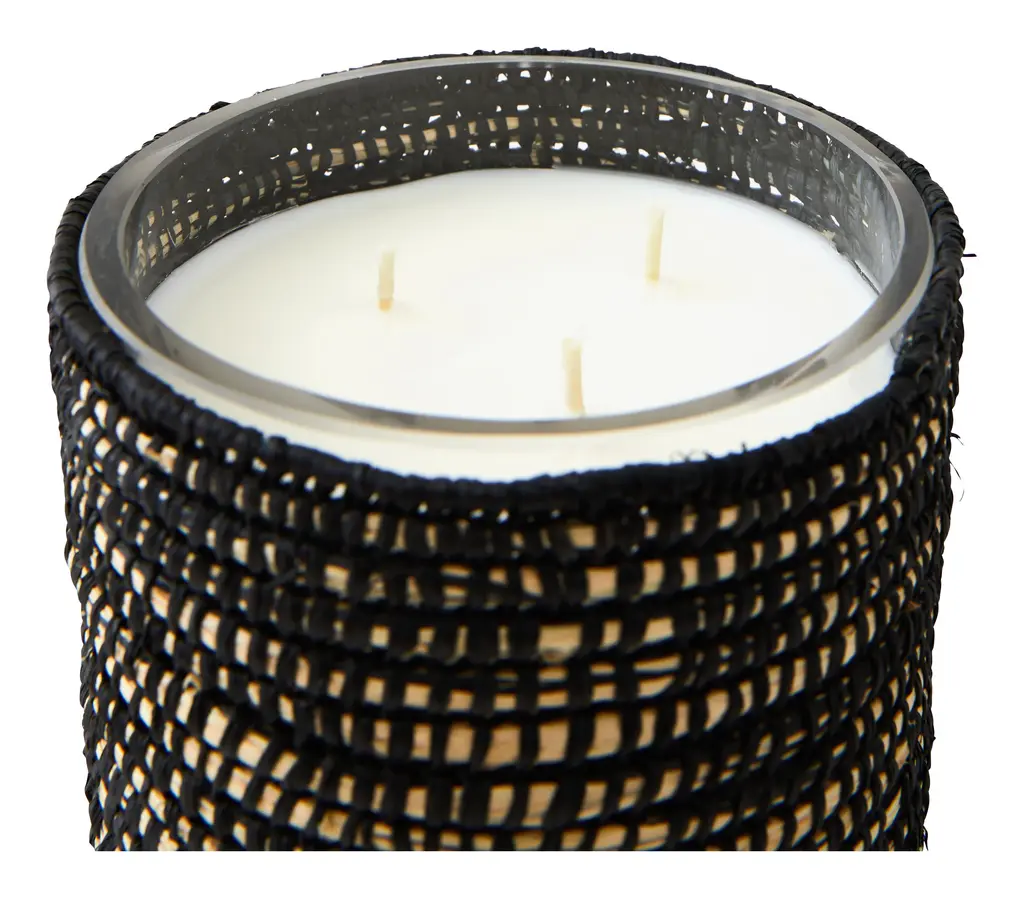 Bask in the beauty of a day spent relaxing in the shade of a North African fig tree with our Moroccan Fig Candle. Handmade in Marrakech by a mother and son team, this enchanting candle captures the scents of fresh leaves and sweet fruits using a carefully selected blend of perfumes developed in Grasse, France. This intoxicating fragrance is mixed into a soy wax blend and poured into a simple recycled glass jar, which is sheathed in a textural black rattan sleeve that was handwoven by a women’s cooperative in the western Moroccan city of Essaouira. Sure to transform any space with its uniquely captivating fragrance, our Moroccan Fig Candle would make the perfect gift — or, more indulgently, gift to self. •soy wax •natural fragrances •cotton wick•recycled glass jar wrapped in handwoven black raffia •scent: notes of fig leaves, fig wood and white cedar•handmade in morocco SMALL •3.25" diameter x 3.75"H •1 wick•approximately 40 hour burn time MEDIUM •5" diameter x 4.25"H •3 wicks •approximately 80 hour burn time LARGE •6.25" diameter x 6"H •4 wicks•approximately 180 hour burn time EXTRA LARGE •8.25" diameter x 8"H •5 wicks •approximately 400 hour burn time
