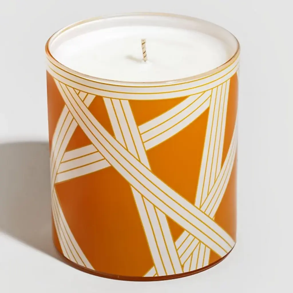 The Nastri Scented Candle from Missoni fills any space with a rich, layered fragrance while serving as a decorative accent. Housed in a glass vessel wrapped in flowing ribbon-like patterns, it blends scent and style effortlessly. With a 50-hour burn time, it opens with notes of clove, rosemary, and black pepper, followed by cinnamon, jasmine, patchouli, and cedarwood, finishing with vanilla, amber, tobacco, and violet leaves. Once the candle has burned down completely, the dishwasher-safe container transforms into a stylish storage piece for everyday essentials.