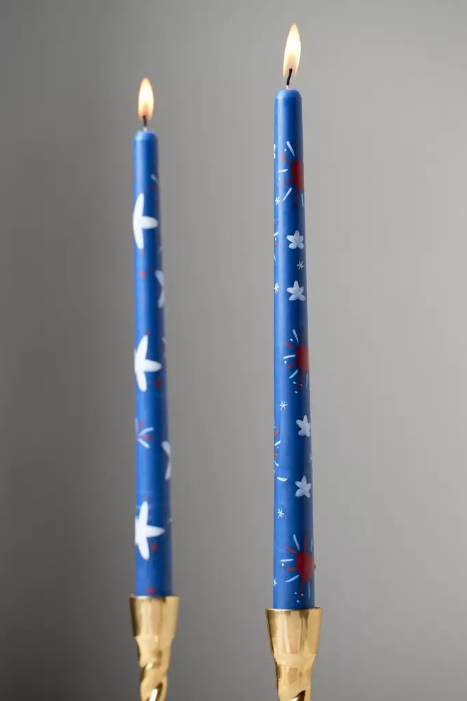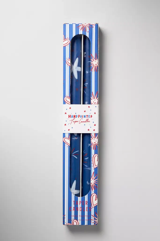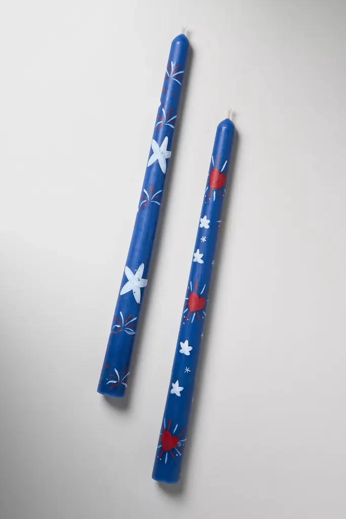 Nephthys Illustrated Stars & Stripes Handpainted Taper Candles, Set Of 2