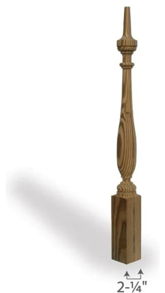 Enlist the North Carolina Taper-Top Spindle to customize the look of your outdoor deck or patio, or to style your interior stair bannister. This quality piece of woodwork impresses in any space.Indoor/outdoor useMaterial: Cedar woodDimensions: W 2.25" x D 2.25" x H 27.75"