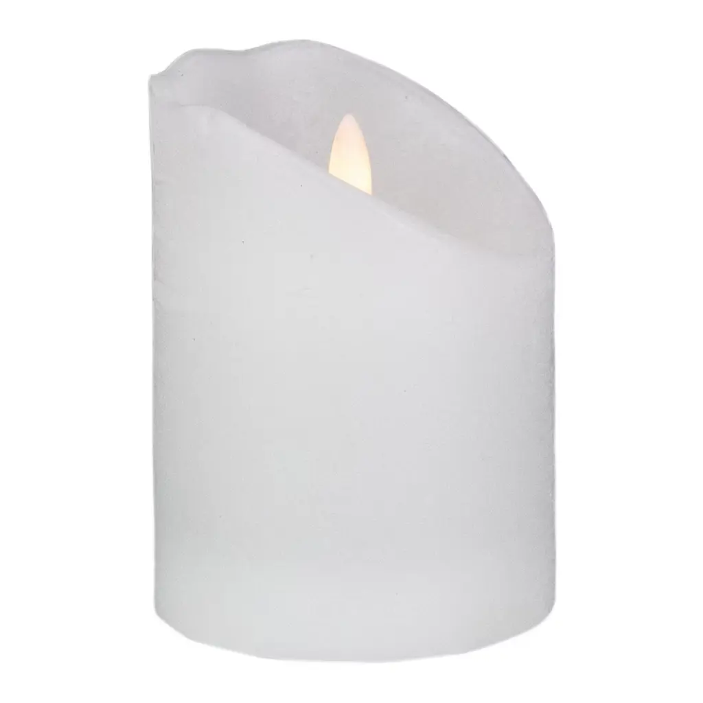 Fill any room with the warm glow of candlelight with no drips, no fire and no smoke. Perfect for holidays, parties, a romantic dinner, or any special occasion. The flameless candle is ideal to use around children or pets without the worry of fire hazards or burning risks but with all the flickering and light a real candle. Product Features Features: White battery-operated flameless LED candle Flameless candles give the warm, inviting glow of a fire without the actual danger of an open flame Uneven oval top, like traditional melted wax candles Convenient on/off switch at the bottom Requires 2 'AA' batteries - not included Recommended for indoor use only Dimensions: 4" high x 3" diameter Materials: wax/plastic