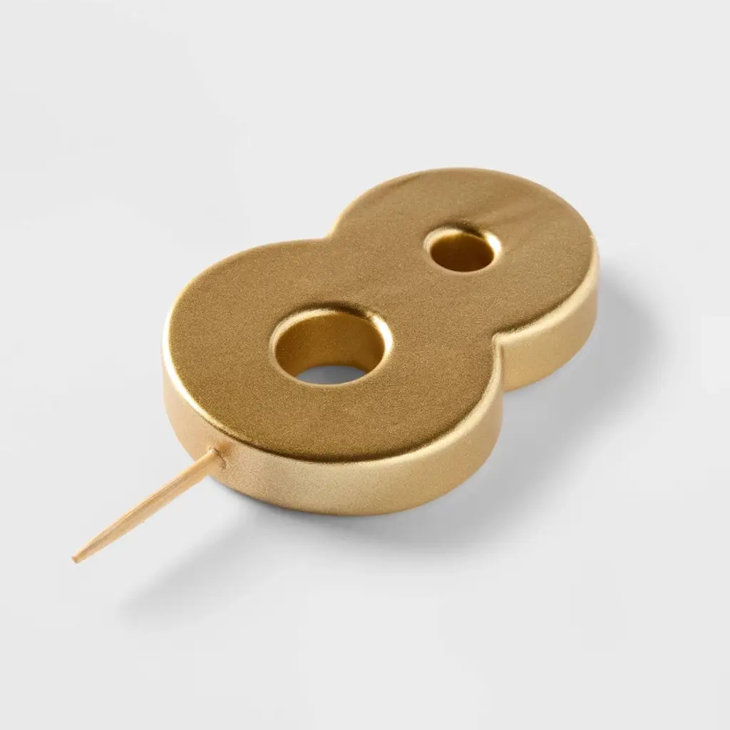Celebrate in style with the Number 8 Gold Candle from Spritz™, a shimmering addition to any birthday or milestone event. Standing at 4 inches tall and crafted from quality wax, this elegant candle brings sparkle to cakes and desserts. Lightweight yet sturdy, it's the perfect way to mark a special occasion with a golden glow.Spritz™: Pops of joy that make the moment™