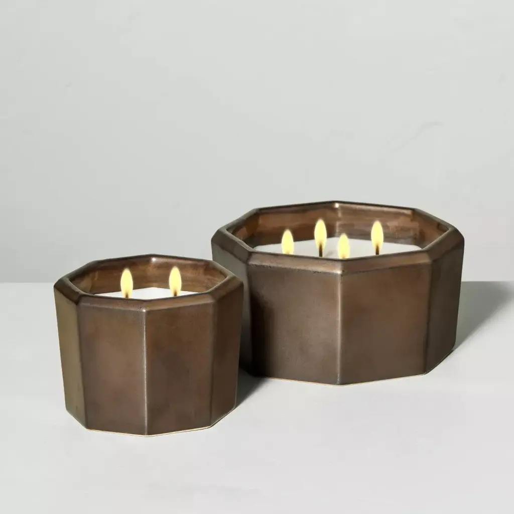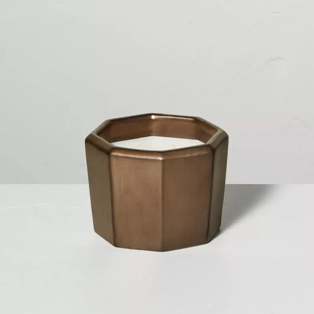 Octagonal Ceramic Harvest Spice Fall Jar Candle Metallic Bronze - Hearth & Hand™ with Magnolia