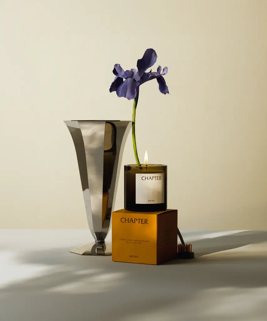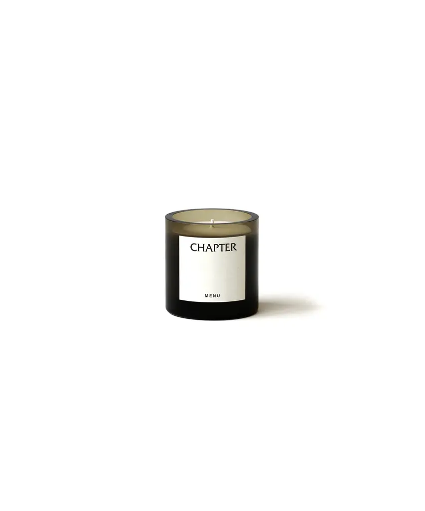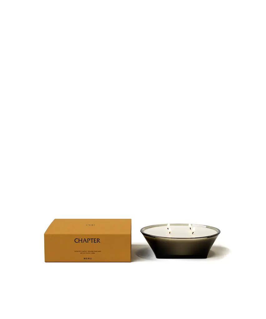 Scent Notes Top notes - lemon zest, hinoki (Japanese cypress), cardamom. Middle notes - patchouli, sequoia. Base notes - cedarwood, amber, musk. Chapter presents a balanced composition to start the day, set the mood at nightfall or create a moment in between. Top notes of Japanese hinoki wood, lemon and cardamom are rooted in the splendour of sequoia, patchouli and a subtle amber base. Each candle is responsibly made using natural essential oils and plant-based wax. Free from parabens and phthalates.Designed by Audo Copenhagen for Audo Copenhagen North America.