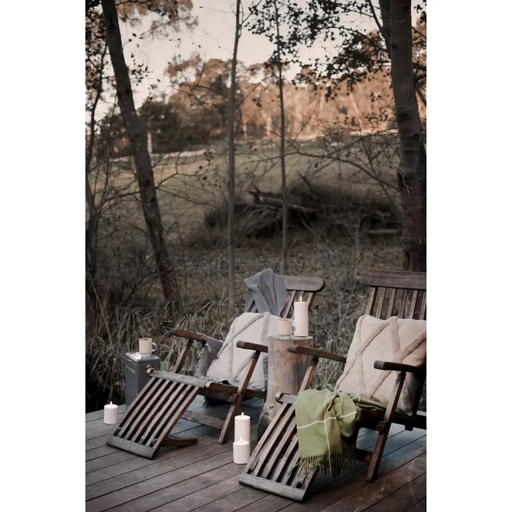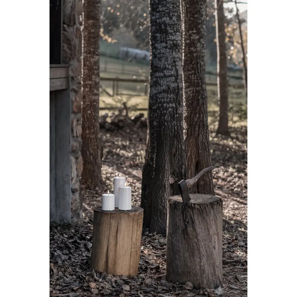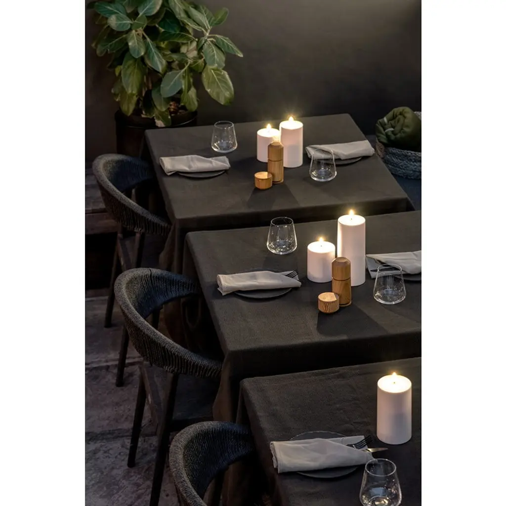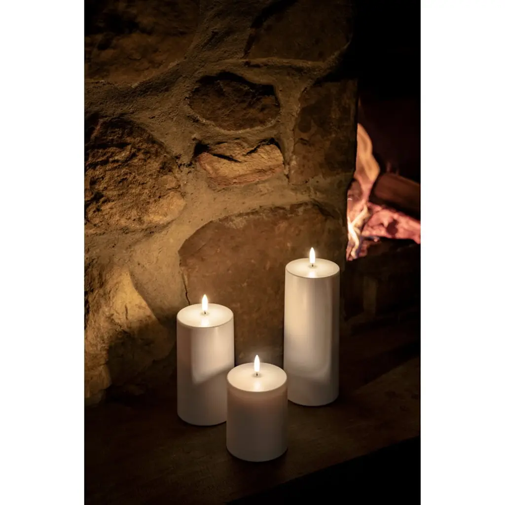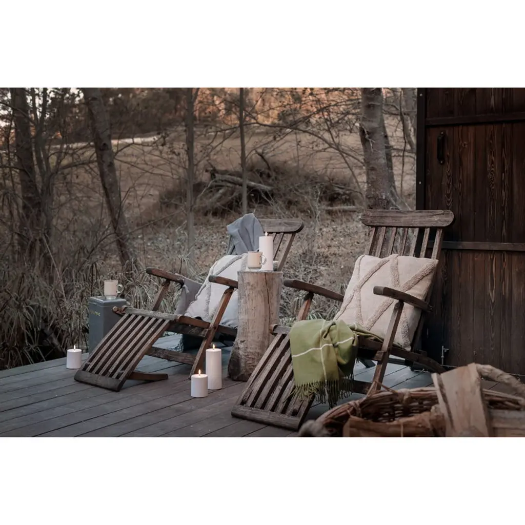 Uyuni Lighting's Outdoor LED pillar candle is a safe way to create a warm and inviting atmosphere in outdoor spaces – the kind that can only be achieved with the gentle flicker of a burning candle. The water-resistant and UV-protected Outdoor LED candle is equipped with Uyuni’s patented 3D flame that mimics the fluttering of a regular candle, glowing softly in a warm white tone. The battery-operated LED candles do not heat up during use and do not need to be monitored like regular candles, making them ideal for families with children or pets. Flameless LED candles are also great for centerpieces and other compositions as they do not pose a fire hazard even when in contact with other decorations. The Uyuni Outdoor LED pillar candle has a built-in timer with which you can set the candle to burn for six hours. With the Uyuni remote control, available separately, the timer can be set for either 4, 6, 8 or 10 hours. With the remote control, the candle is also dimmable.